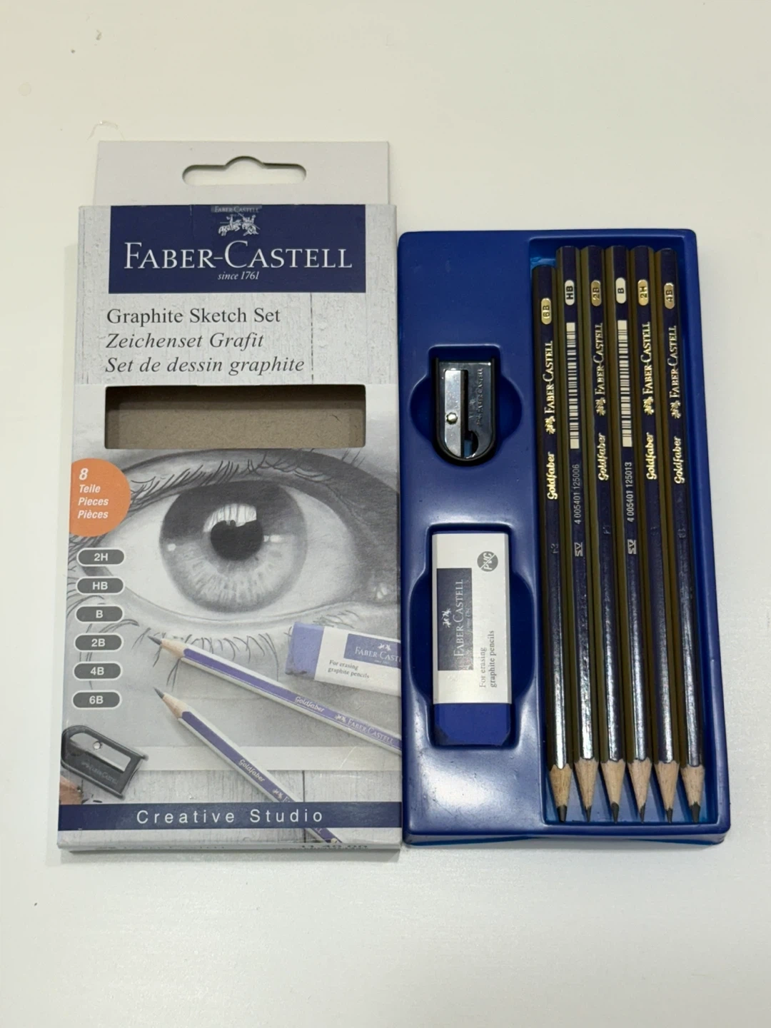 Faber-Castell Graphite Sketch Set, perfect for artists and hobbyists alike! The set includes a variety of graphite pencils, sharpener and eraser. Great for sketching and drawing