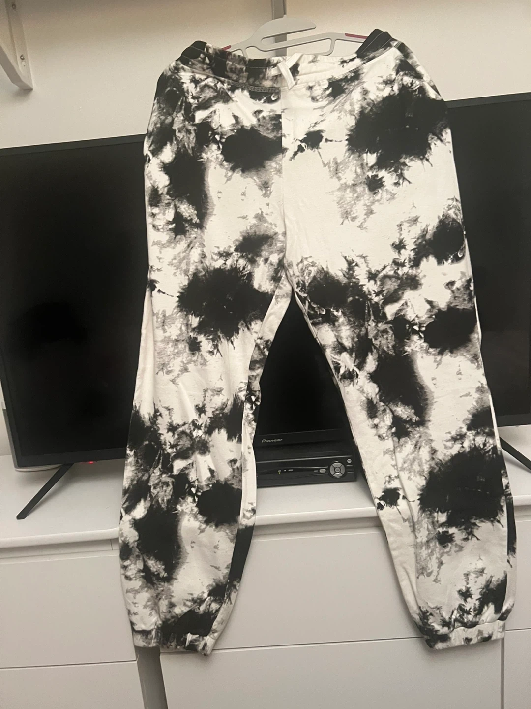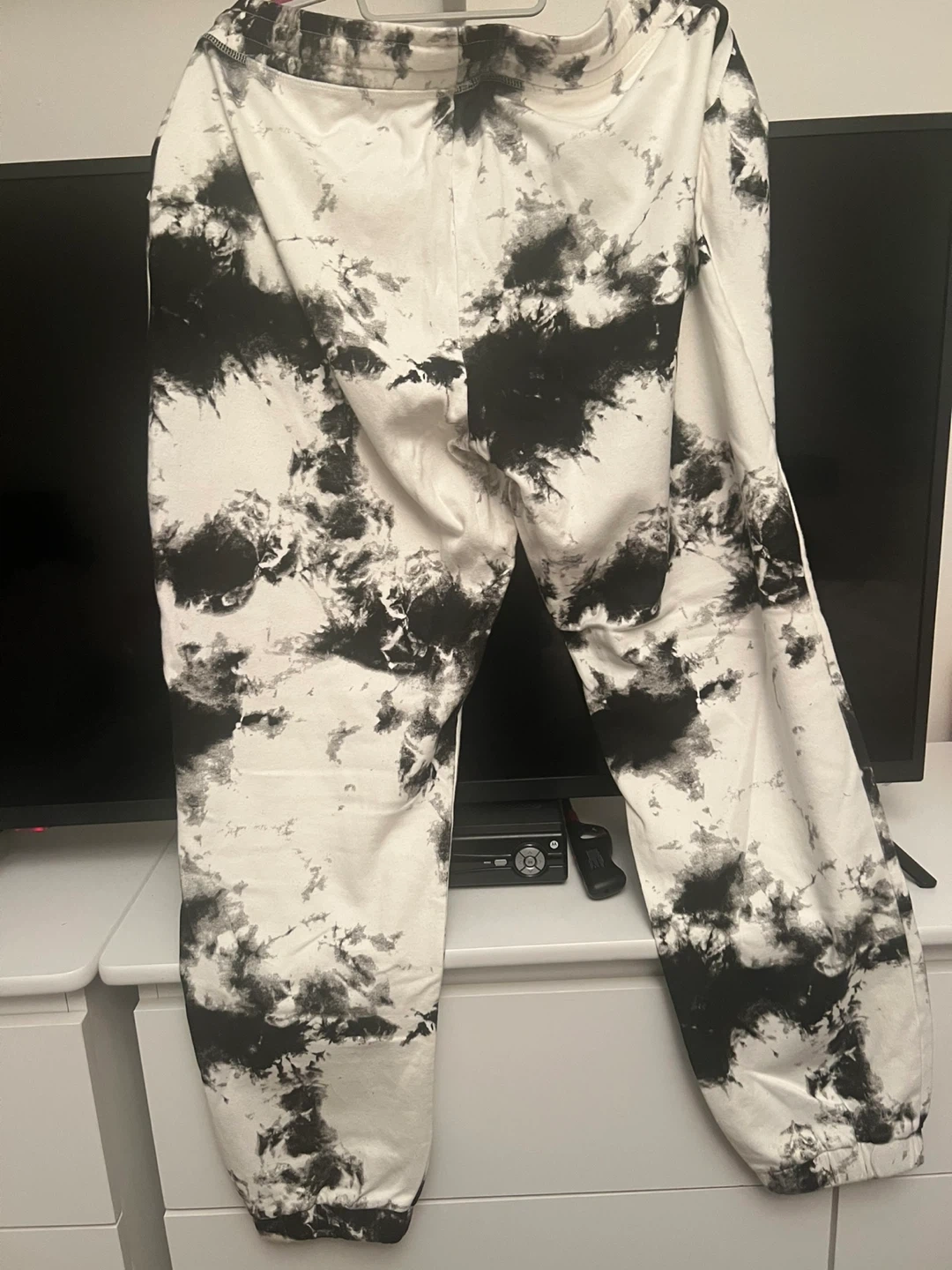 Selling a pair of Zara joggers in size L. They feature a unique tie-dye pattern, perfect for a casual and trendy look. They are brand new, never been worn.