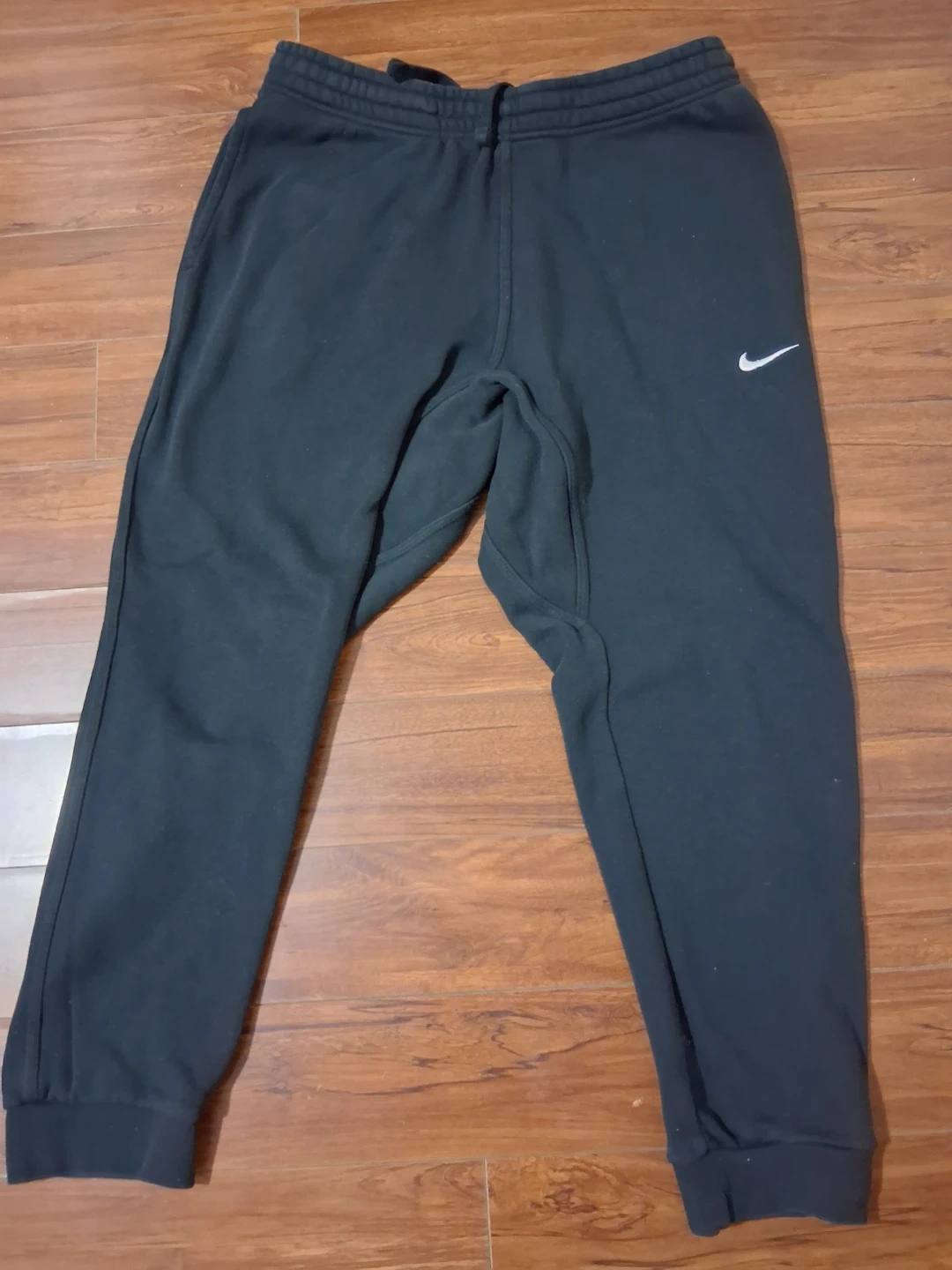 These are black Nike joggers. They're a size XL. Made in Pakistan. Comfortable sweatpants for everyday wear! Clean and unworn. Ready for a new home. Thanks 😊