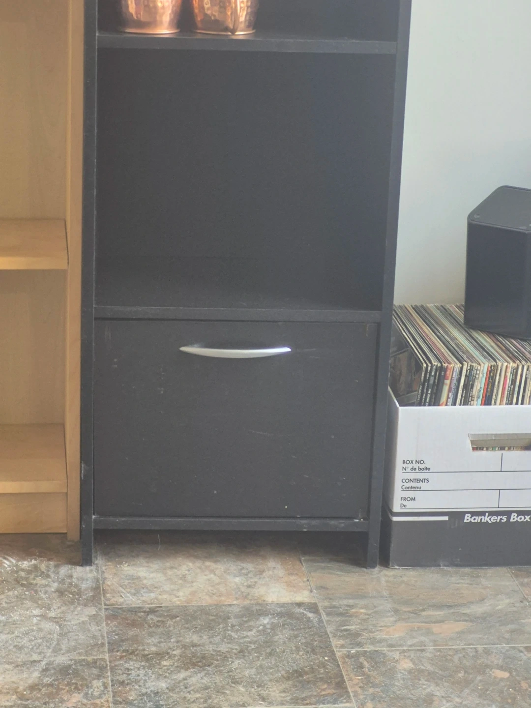 Black Tall Shelf Unit with Drawer
