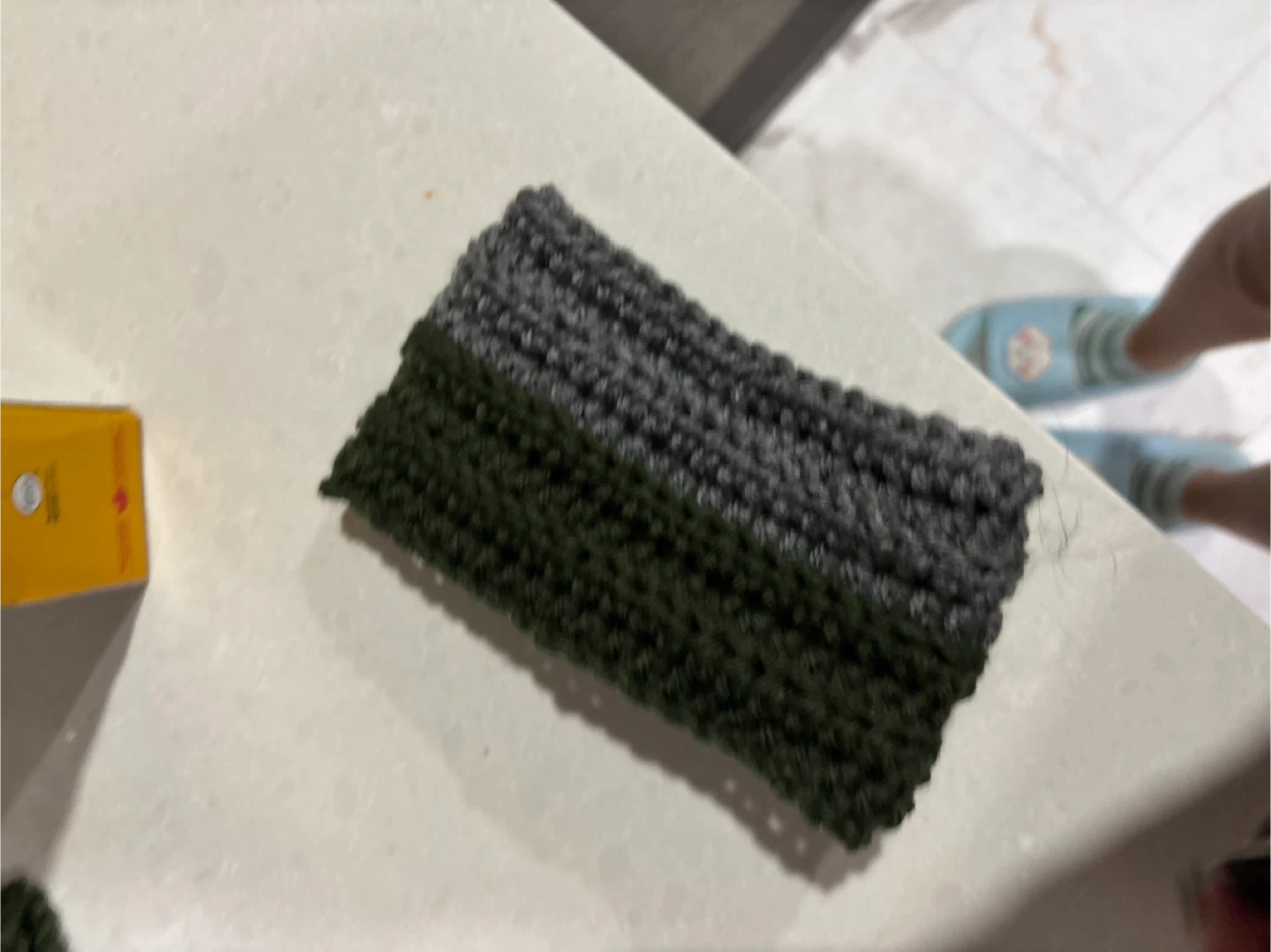 Selling a handmade crocheted headband. It's a comfy blend of green and grey yarn. Perfect for keeping your hair back or adding a little handmade charm to your outfit!