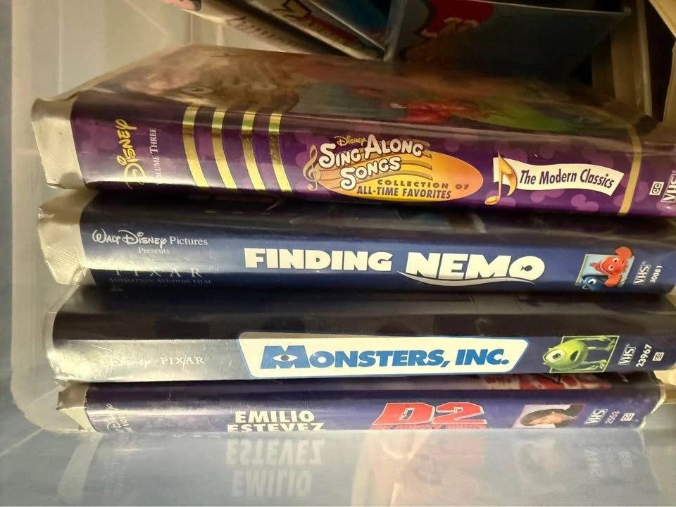 About 70+ VHS tapes, including many Disney classics perfect for kids and grandkids! Also includes titles like Spartacus and Schindler's List. I will not reply to 'Is it still available?' messages.