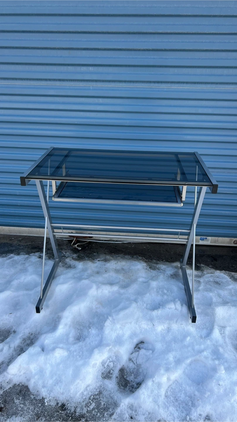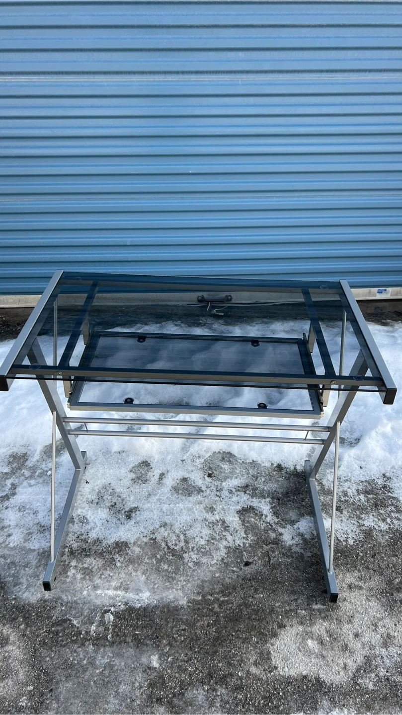 Glass Top Desk with Silver Frame