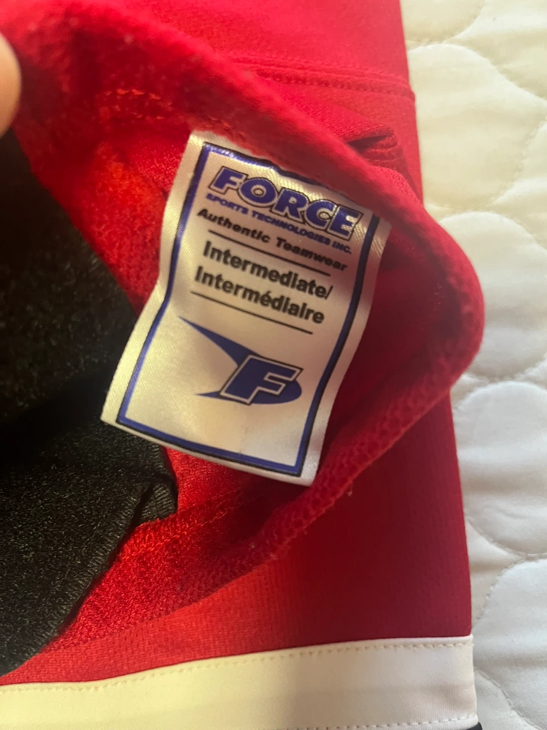 Selling 3 sets of hockey socks! You'll get one pair of Bauer Team socks in size S/M, one pair of white socks that are 24", and one pair of red Force socks in intermediate size.