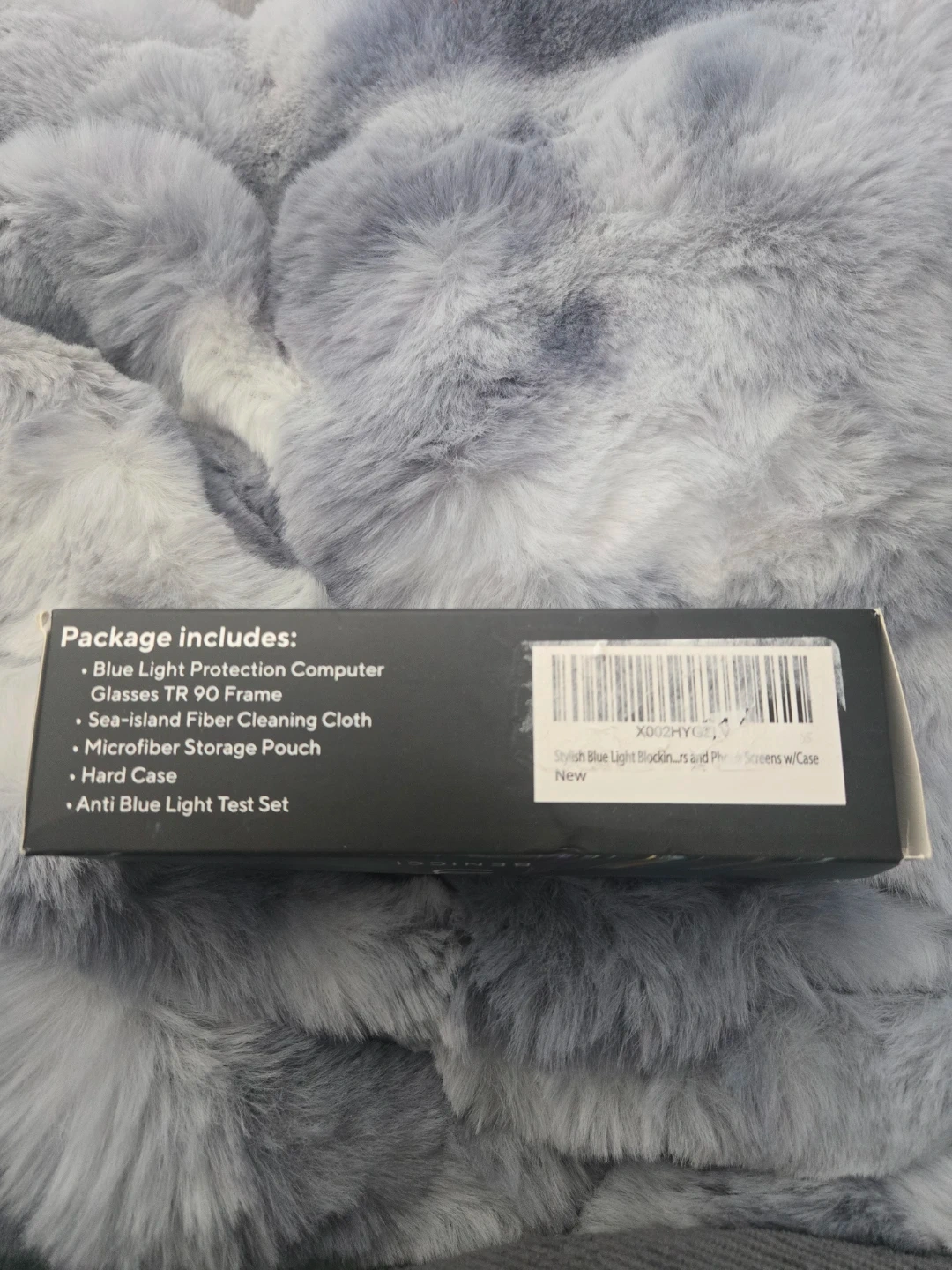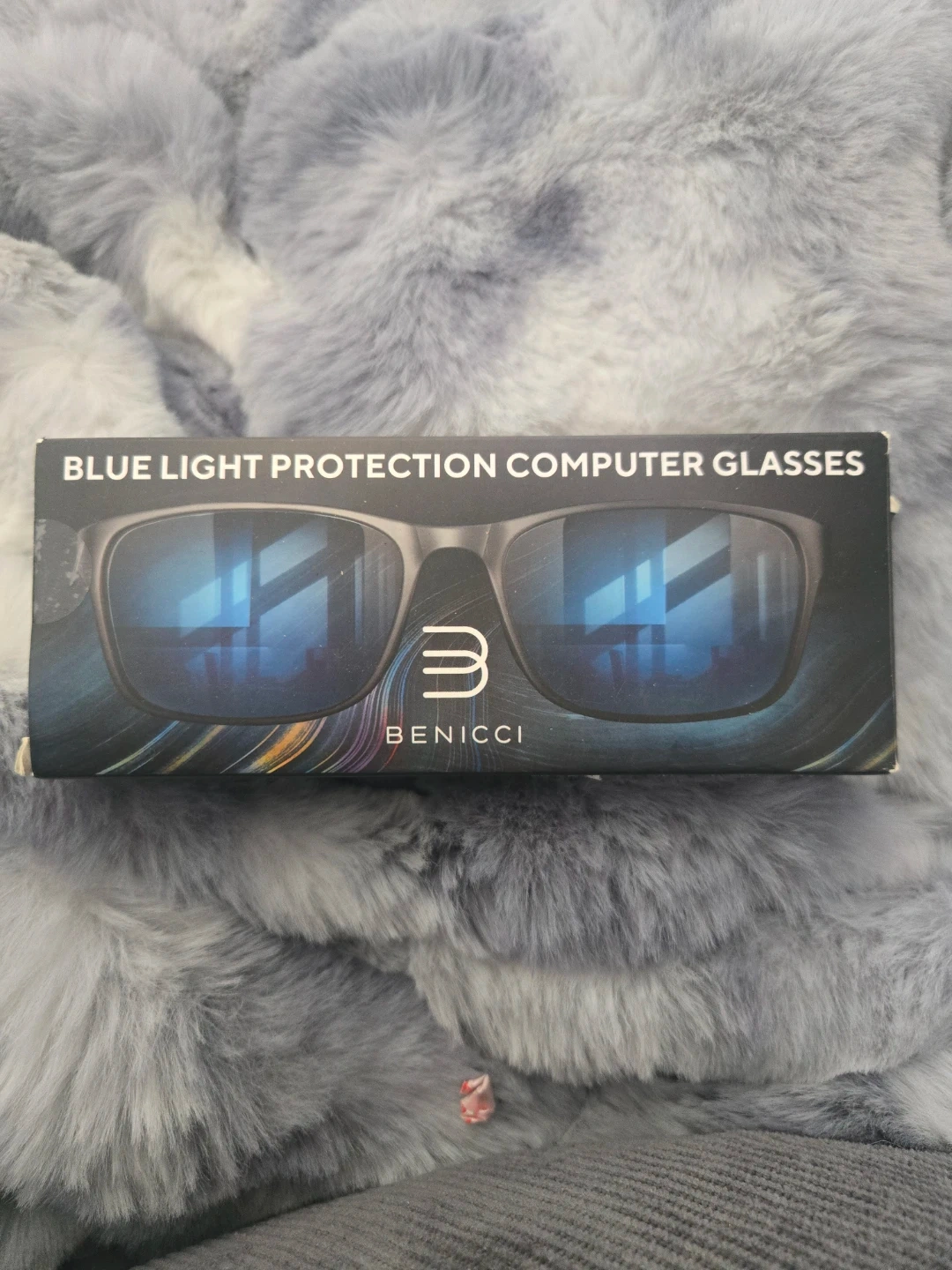 Blue light protection computer glasses with a TR 90 frame. Includes a sea-island fiber cleaning cloth, microfiber storage pouch, and hard case. Anti blue light test included!