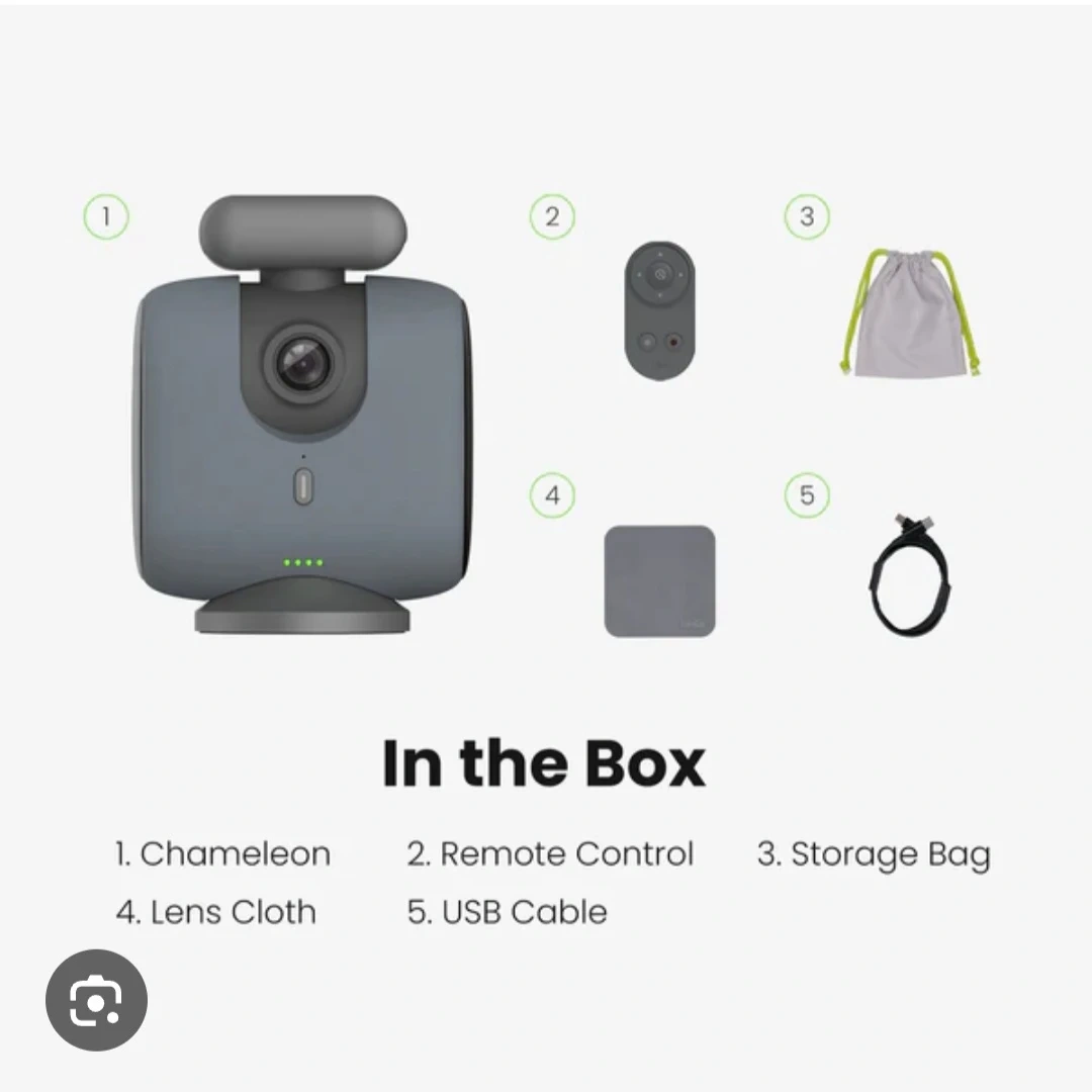 This is the Xooco Chameleon gimbal stabilizer. It comes with a remote control, storage bag, lens cloth, and USB cable. Built for capturing smooth video footage.