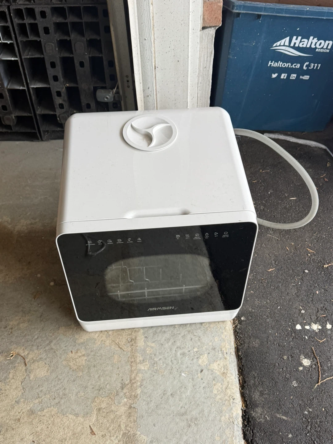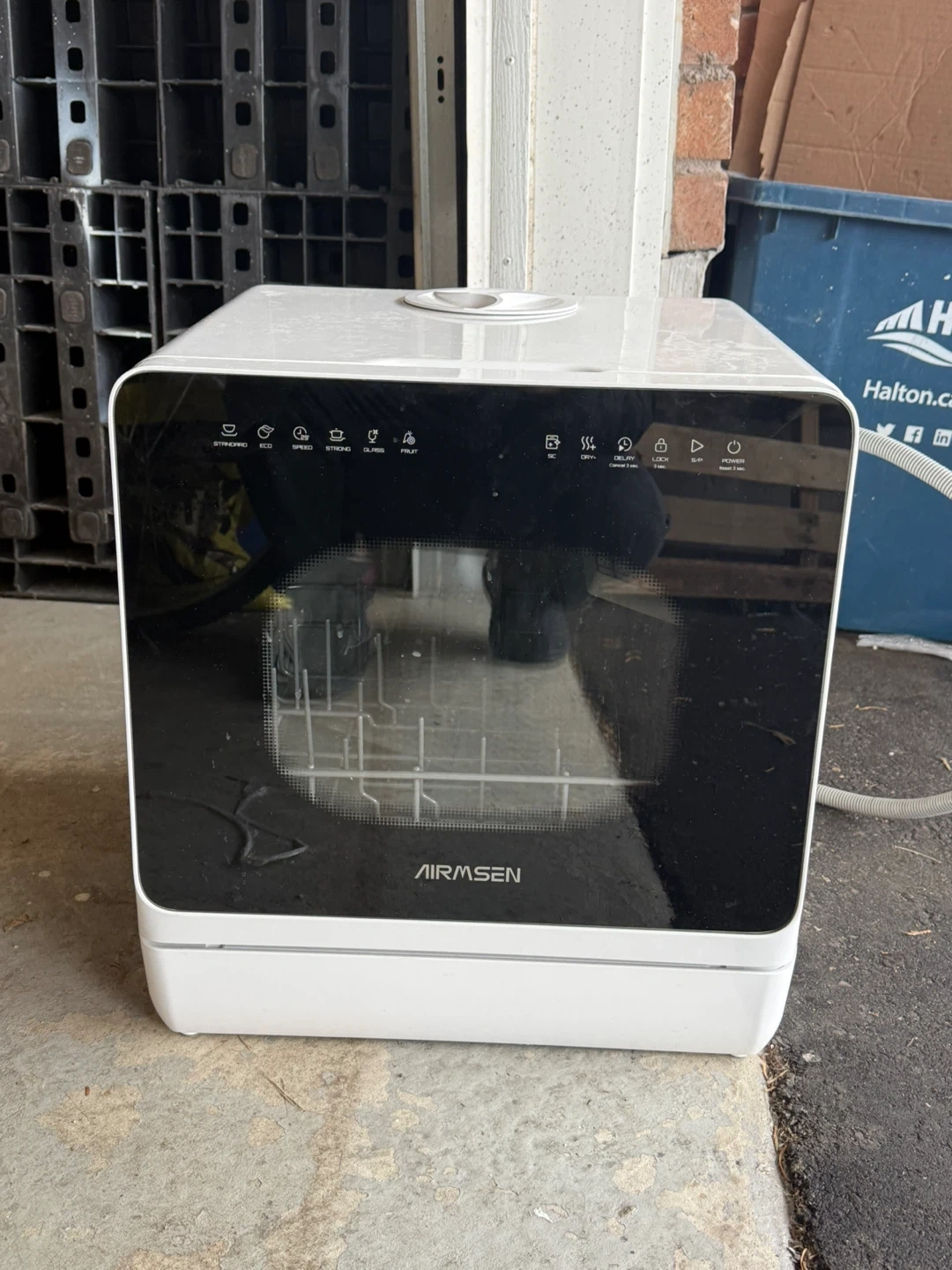 This Airmisen countertop dishwasher is a compact and convenient appliance for your kitchen. It offers multiple wash cycles for different needs. It's great for small spaces like apartments or dorm rooms!