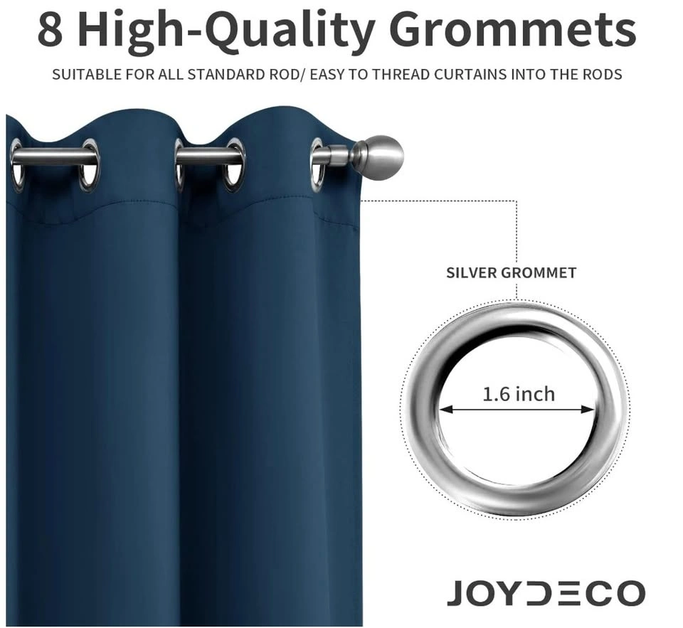 These are brand new Joydeco blackout curtains, a 2-panel set. They are made from 100% polyester, making them durable, machine washable, and easy to maintain. They block 85–99% of sunlight and UV rays, which helps keep rooms cooler and more comfortable, and also reduces outside noise for better sleep. Each panel features 8 silver grommets with a 1.6" inner diameter for easy installation on standard rods. Pickup is near Dixie & Kingston Rd in Pickering. See my other listings and bundle up for extra savings!