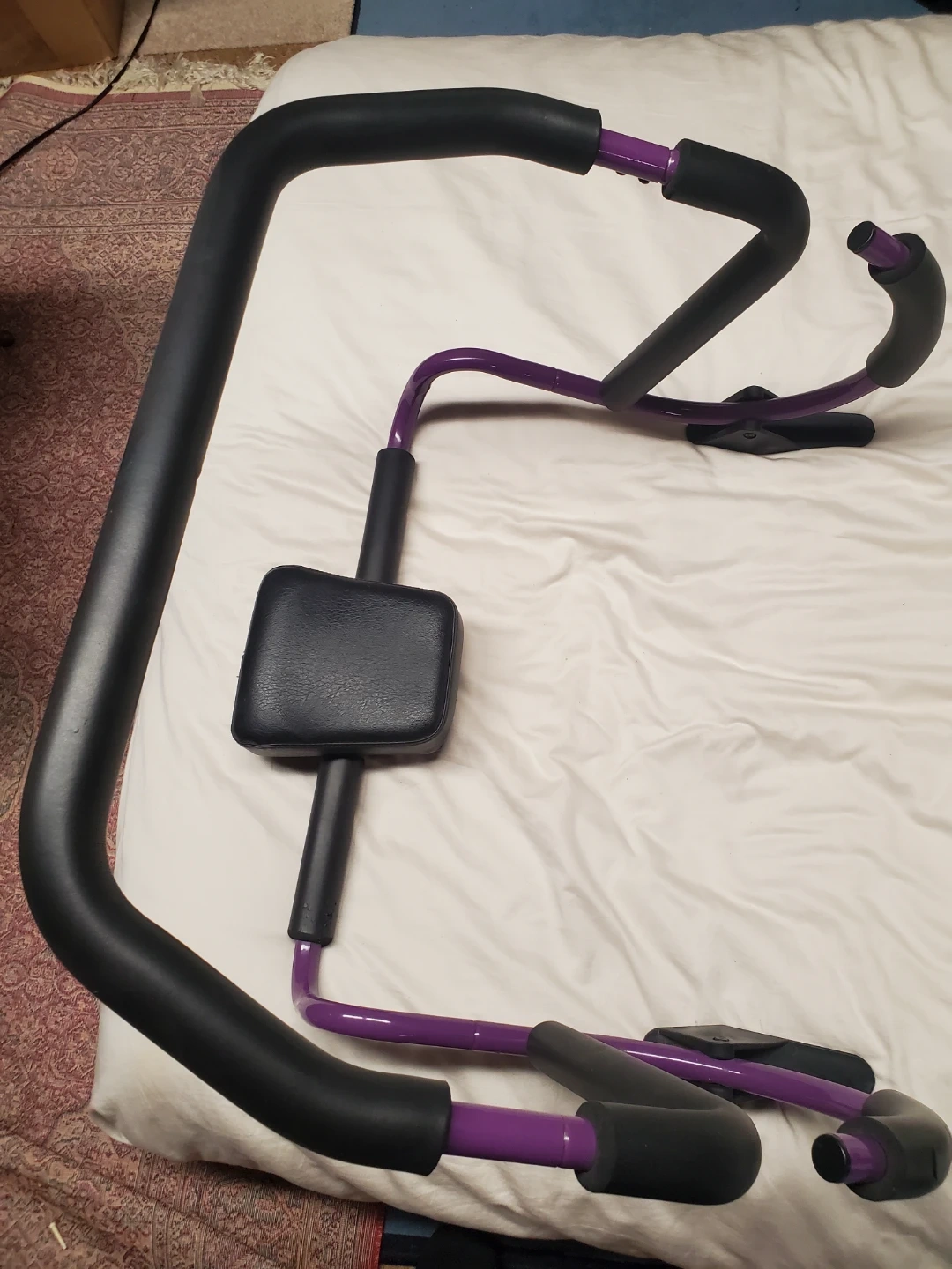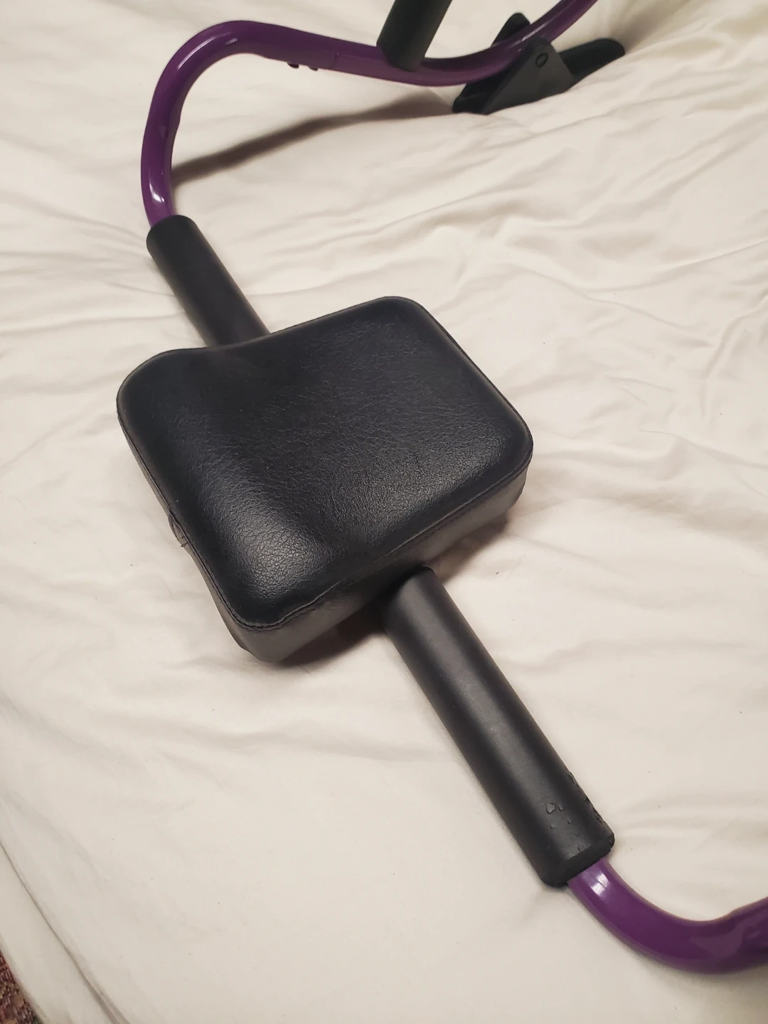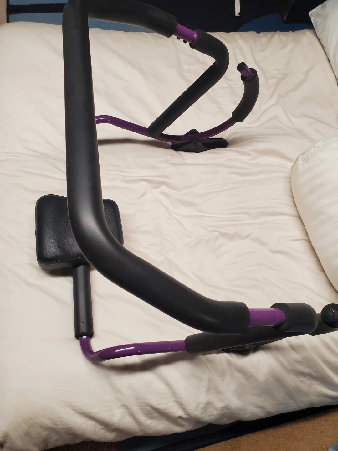 Selling an abdominal workout machine in good condition! It features a black padded headrest and purple frame. Great for home workouts and targeting your core muscles