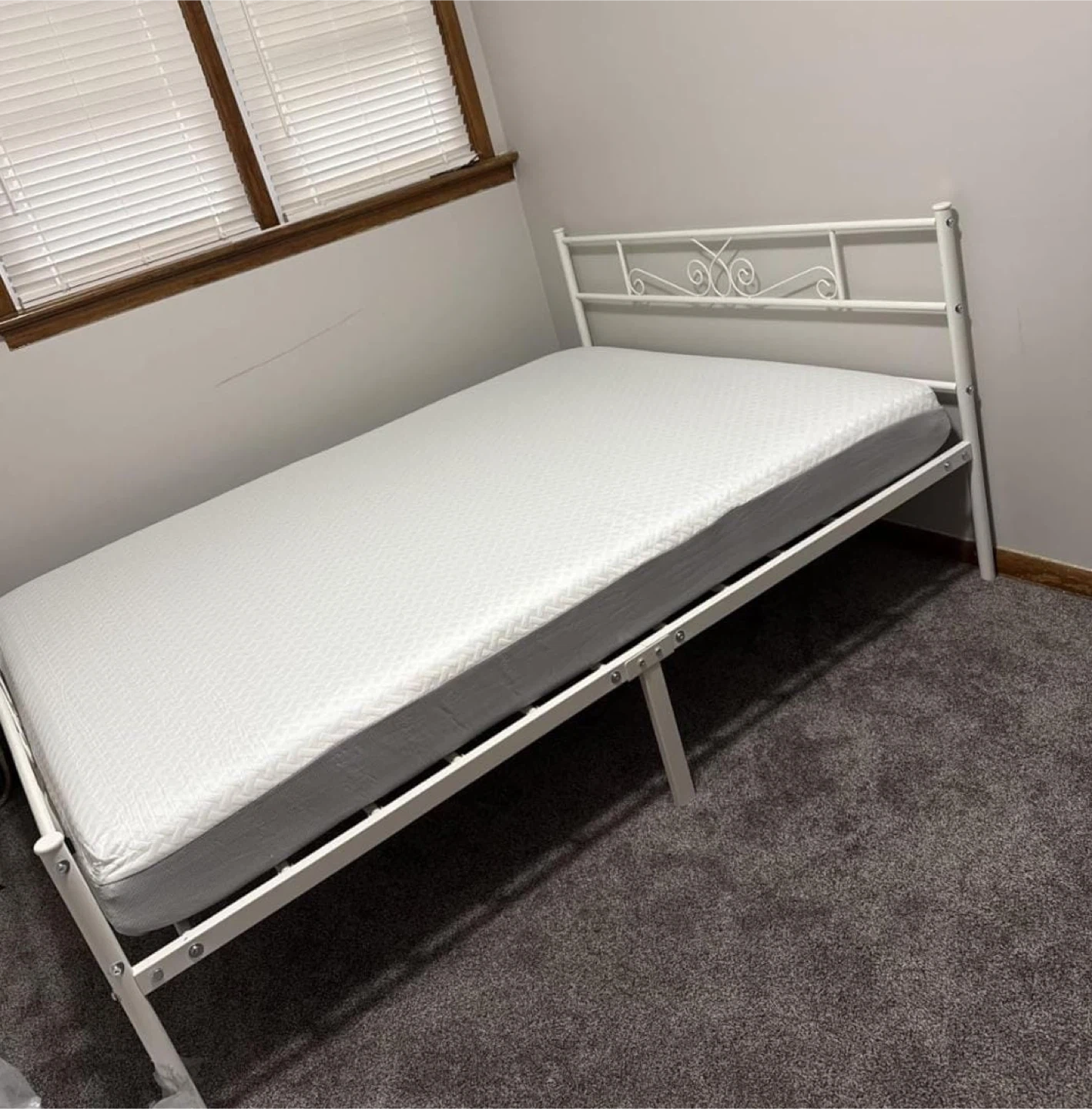 Single Bed Frame – Sturdy & Clean (White Metal)