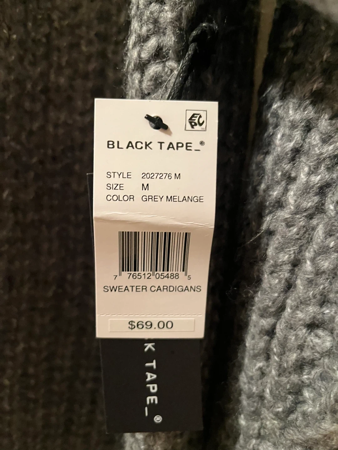 Brand new, tags attached Black Tape brand sweater cardigan in a grey melange colour. The size is medium. This knit cardigan has a chunky texture, has no pockets and is cozy
