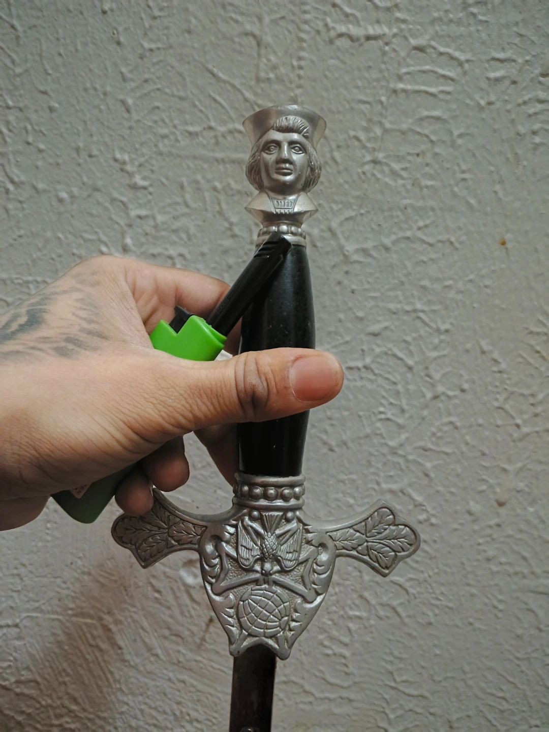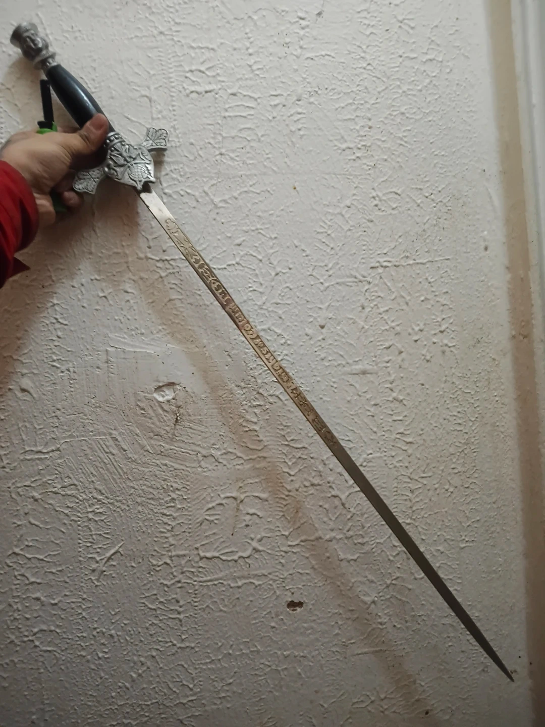 Decorative sword with an ornate handle and engraved blade. It comes mounted on a shield-shaped plaque. The plaque includes an emblem and a plate that reads 'SIR KNIGHT JOHN A. REGO POPE JOHN XXIII ASSEMBLY'.
