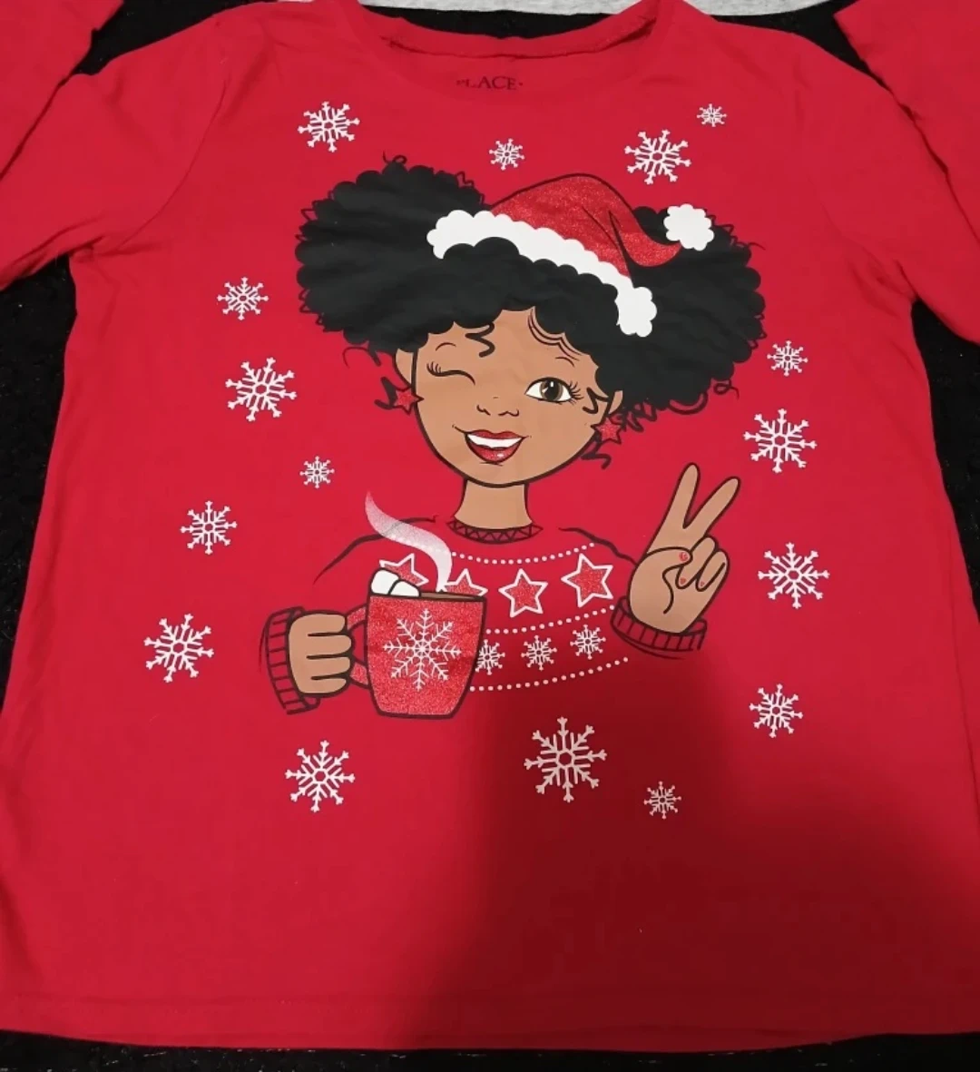 🌺Selling a bundle of girls' t-shirts, all Includes a cute design. Pink long sleeve athletic works shirt, a light pink Hello Kitty shirt, a grey unicorn shirt, and a red The Children's Place Christmas shirt. Great for everyday wear!