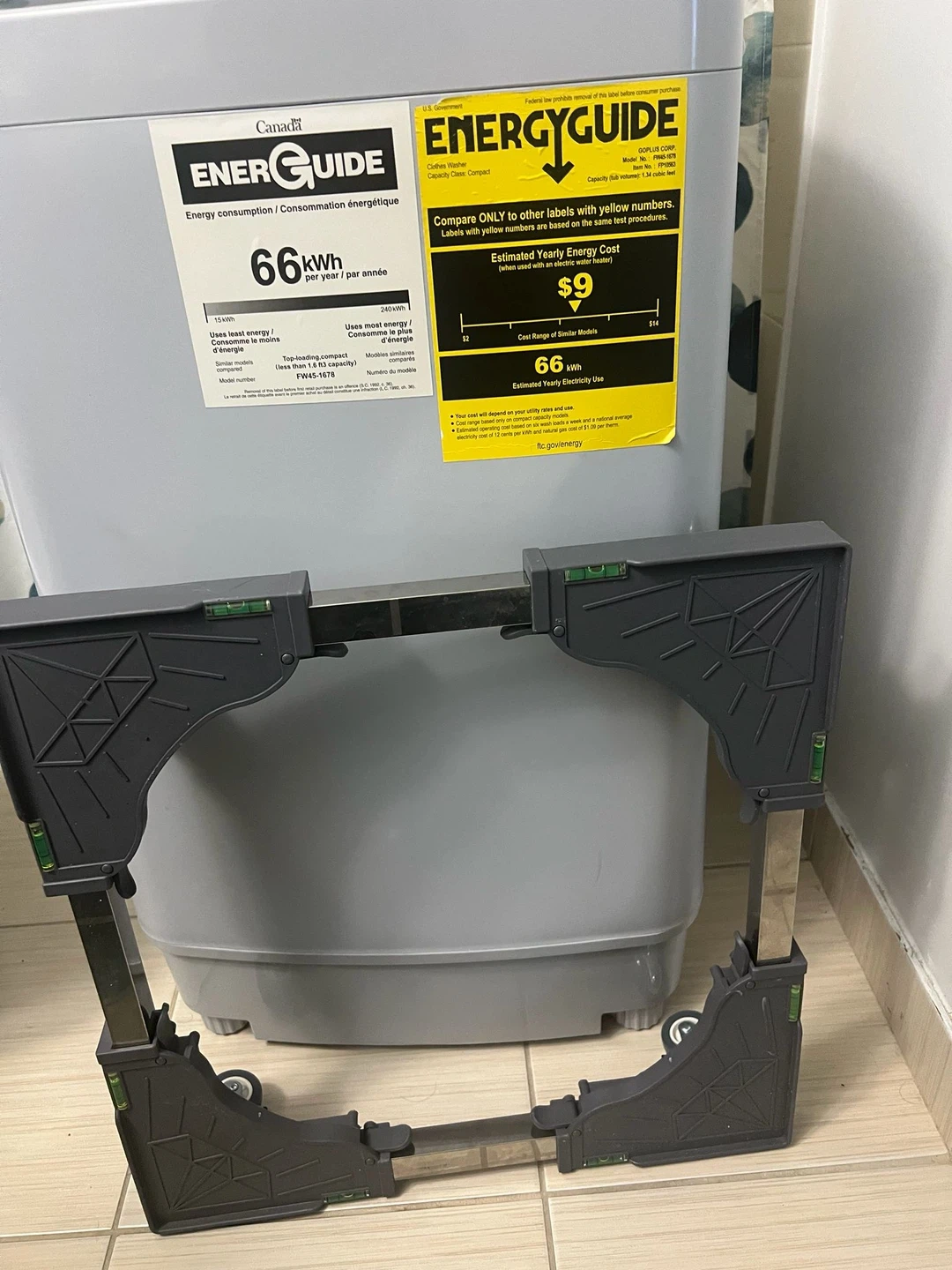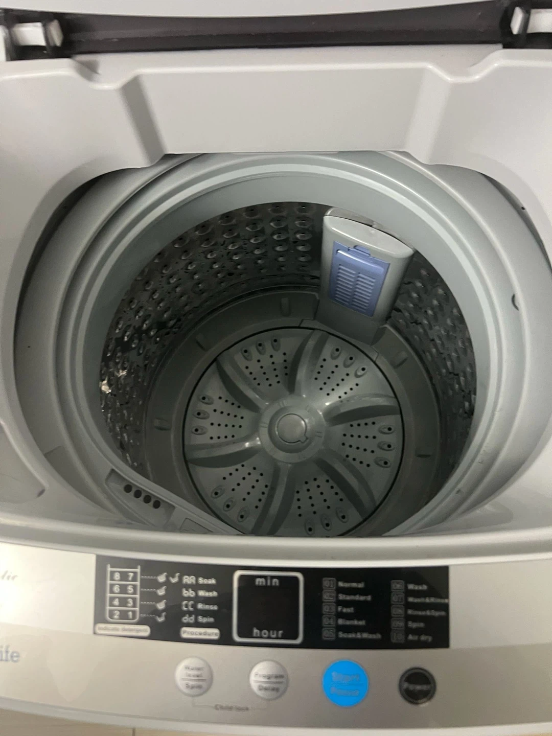This is an Easy Life fully automatic top load washing machine. It comes with inlet hoses and connectors. It's great for small spaces and efficient laundry needs!