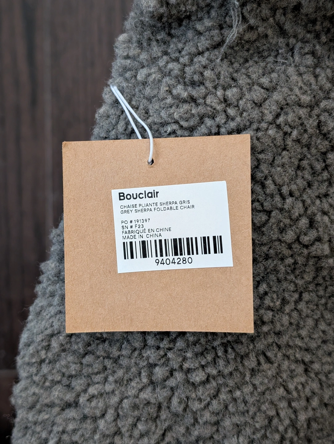 Bouclair Grey Sherpa Foldable Papasan Chair