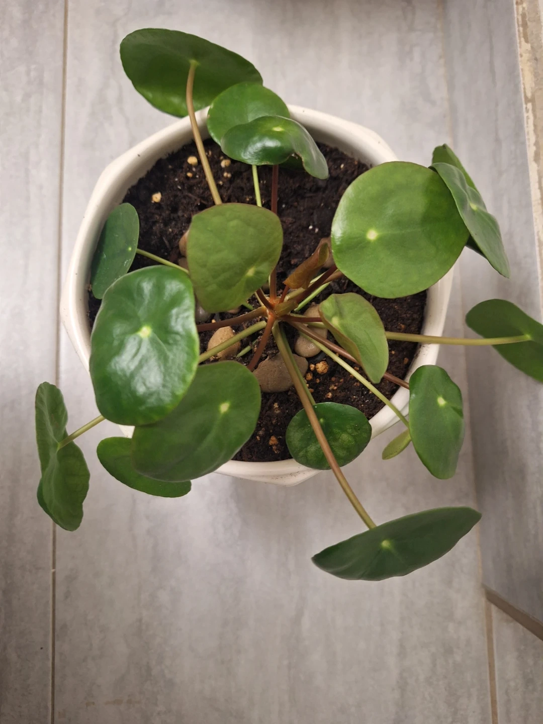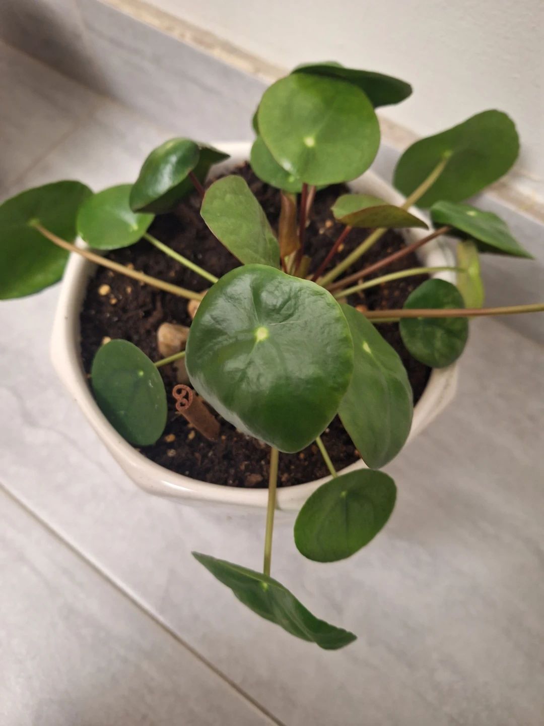 Chinese Money Plant in White Pot in Chinese pot