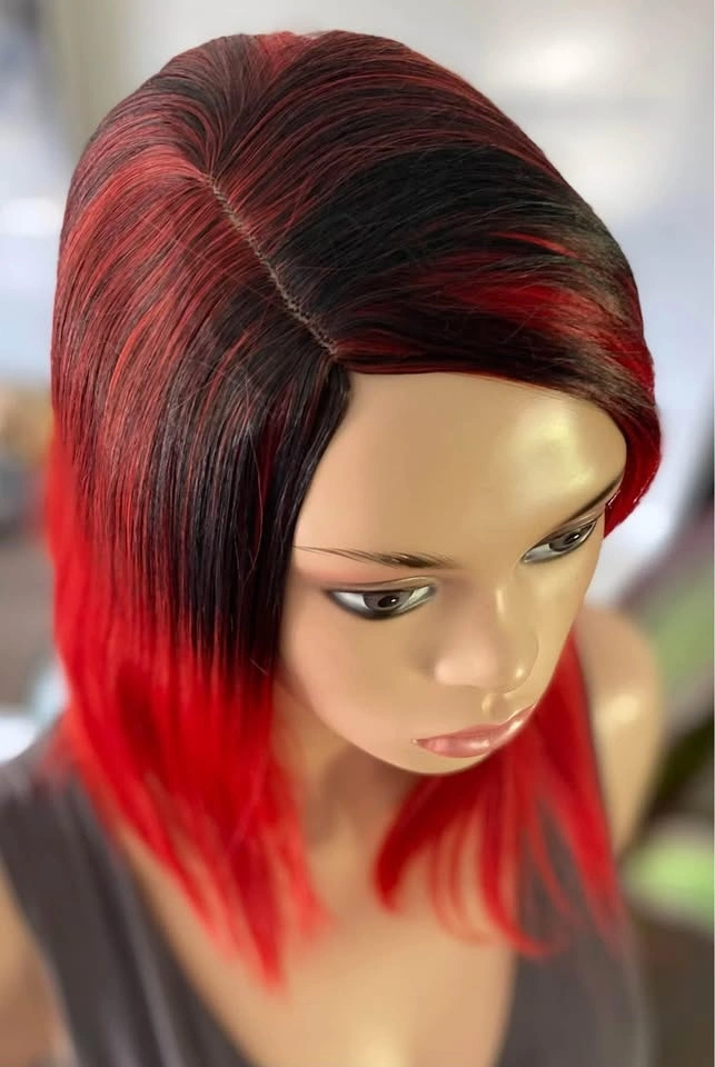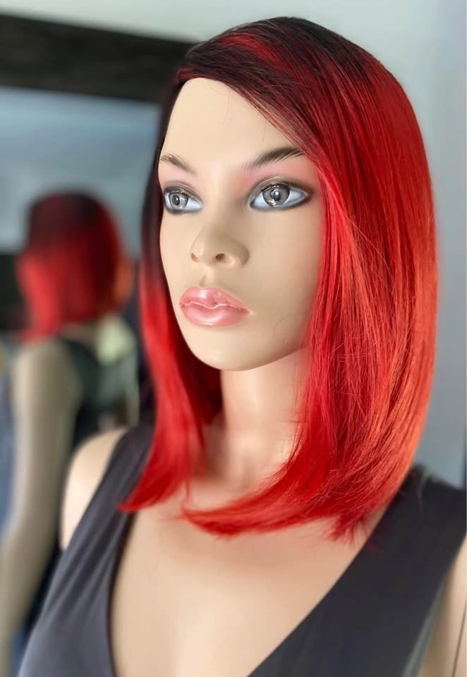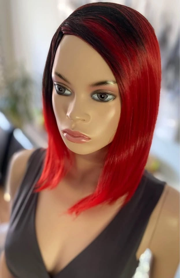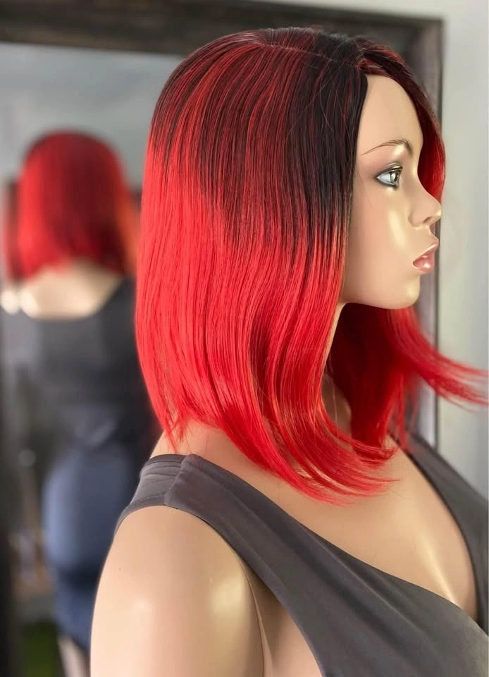 NWOT Bright Red Black Ombré Short Asymmetrical Synthetic Wig
