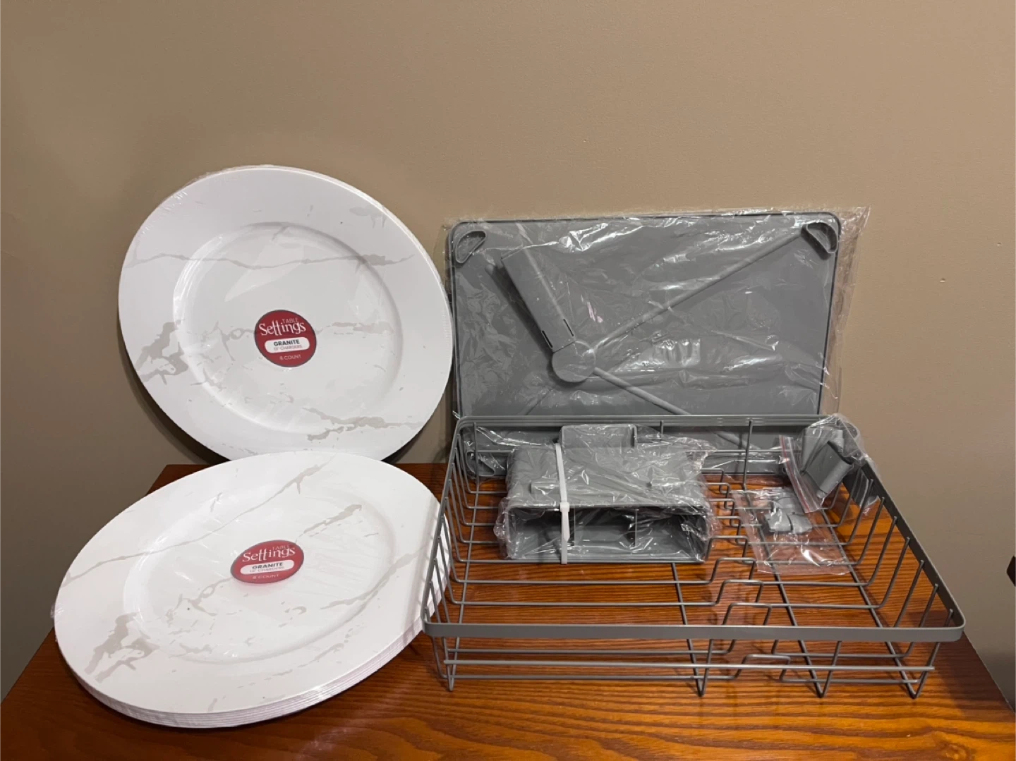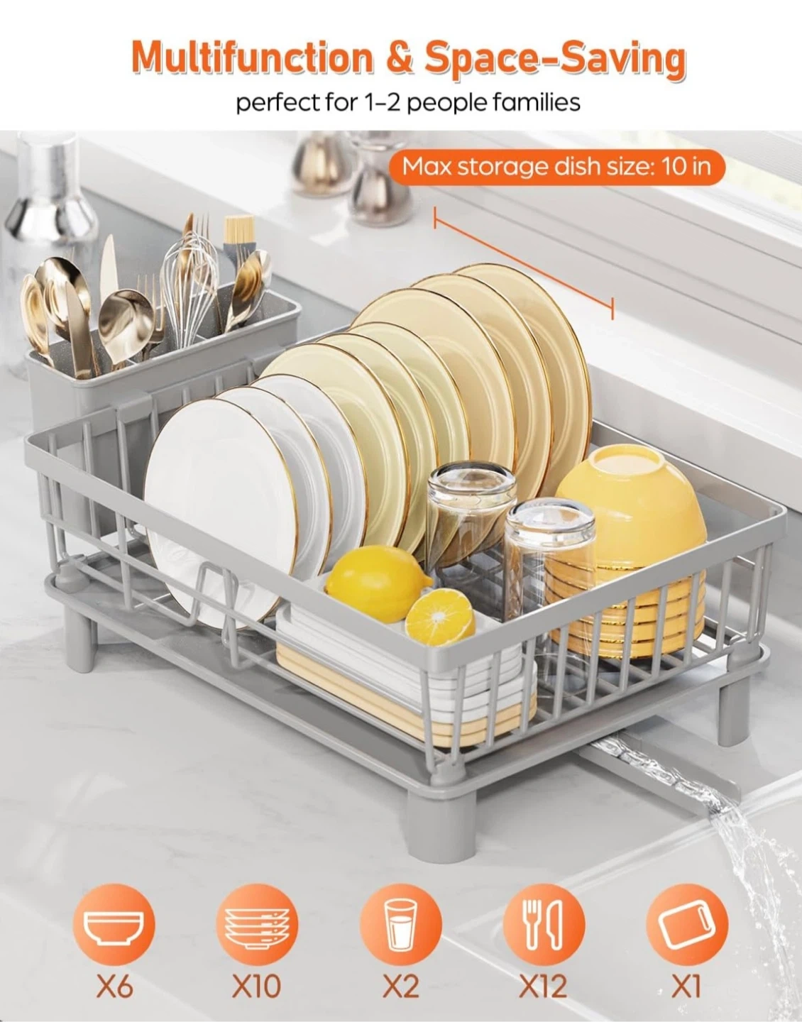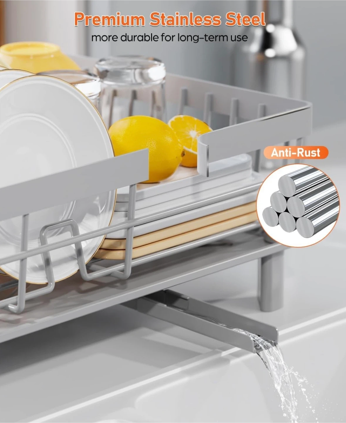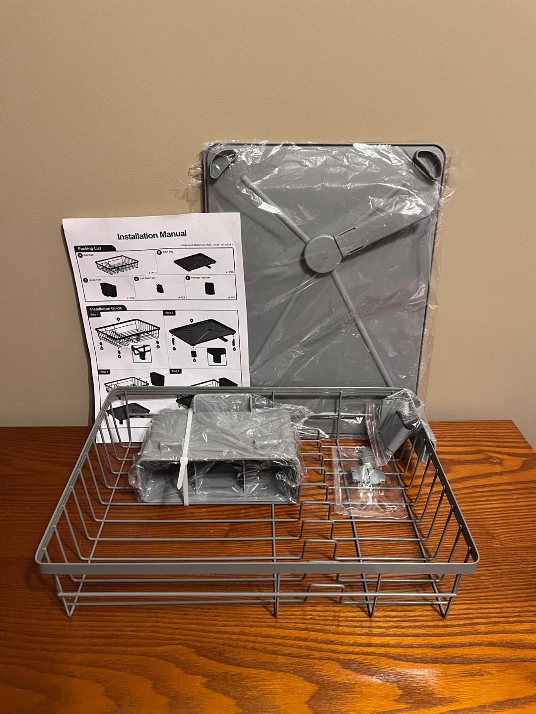 $25 Grey metal/plastic dish drying rack with swivel drainage spout.