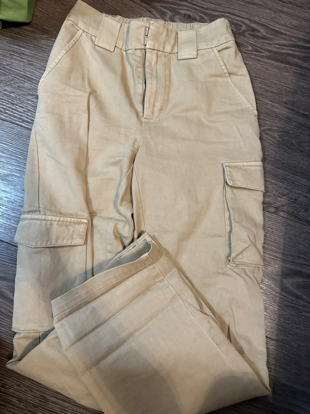 These are khaki cargo pants from Tna. They're size XS. The pants have a zipper fly and button closure. Never worn