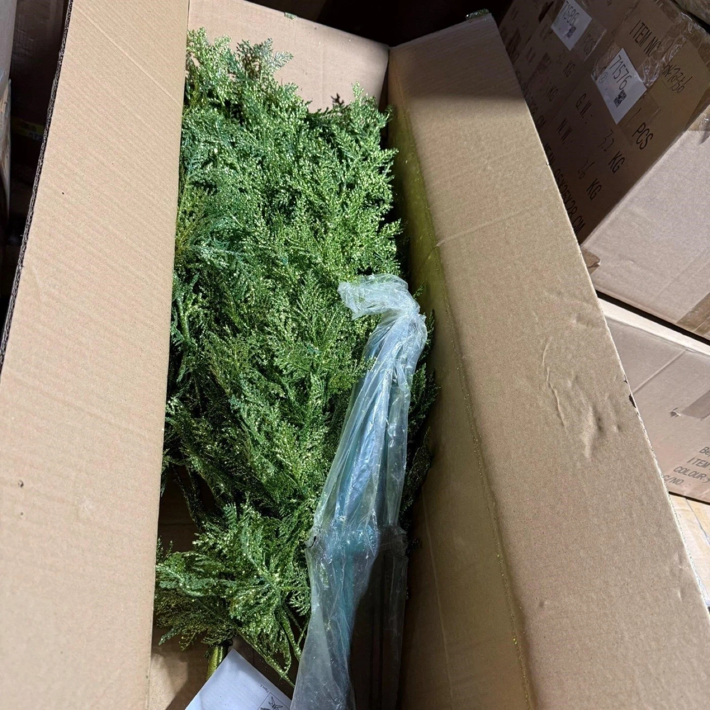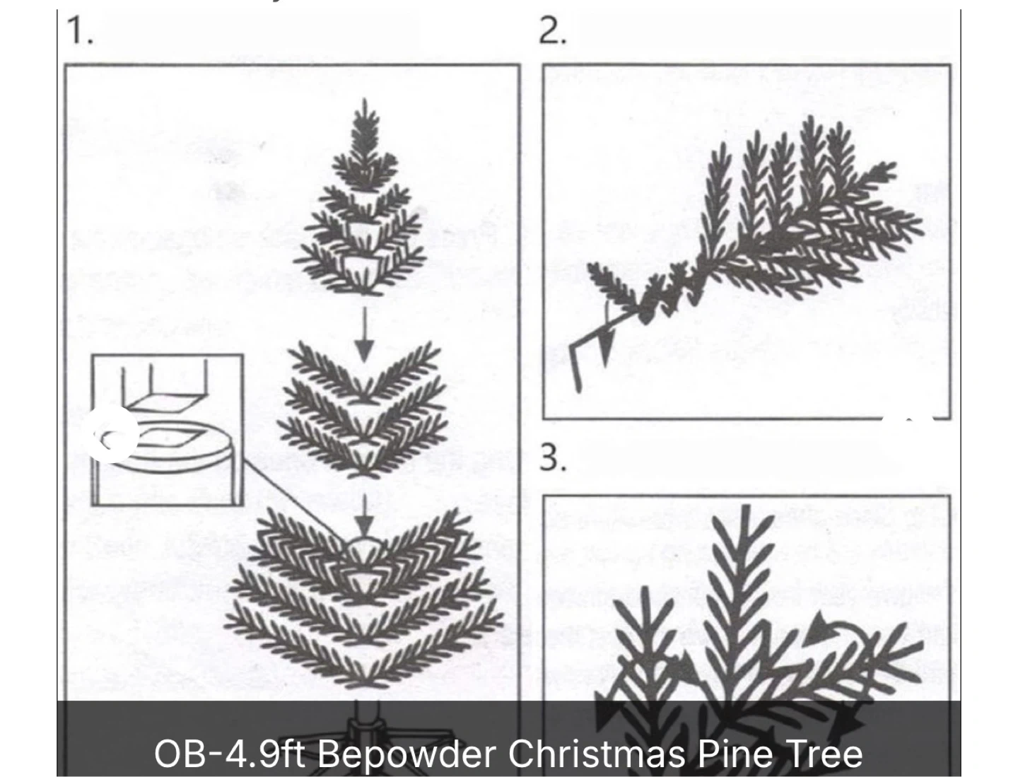 This artificial pine tree is 4.9ft tall and comes in its original packaging. It's designed for easy assembly with hinged branches. A great centrepiece for holiday decorating!