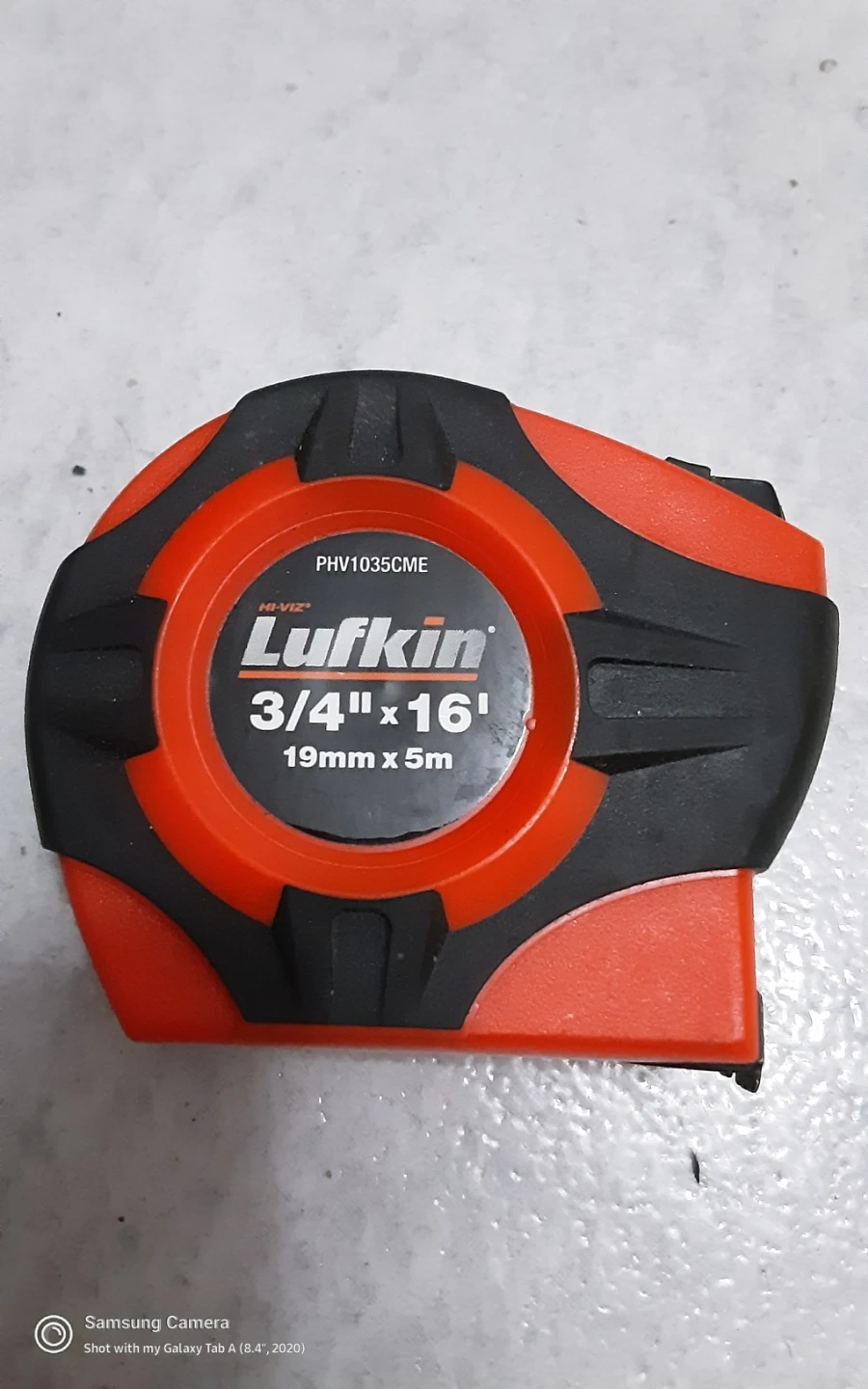 Lufkin tape measure, 3/4 inch width and 16 feet length. It's 19mm wide and 5m long. Handy for household projects or professional use!