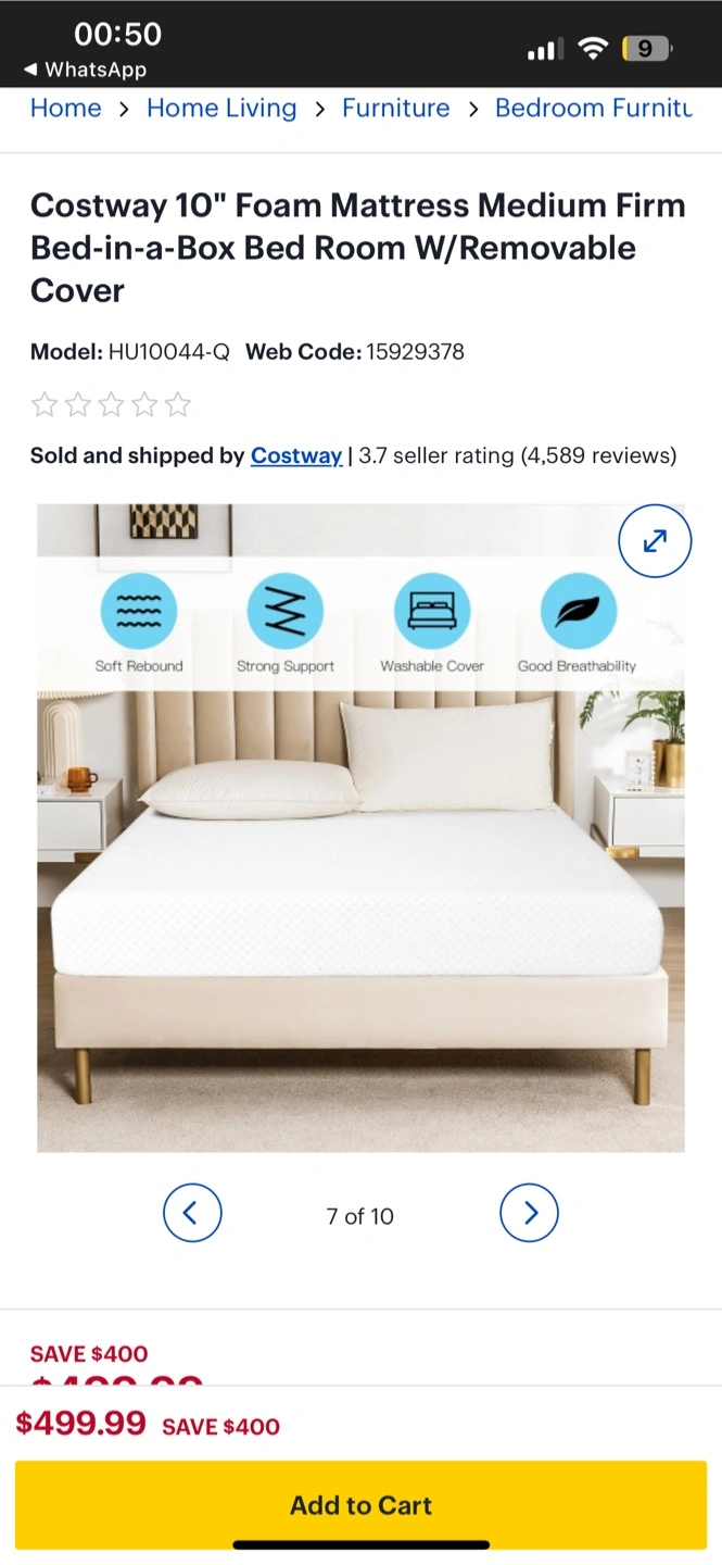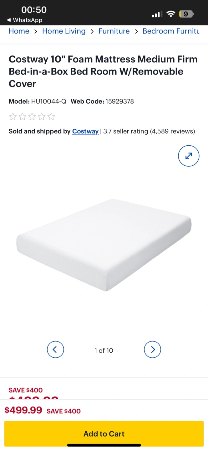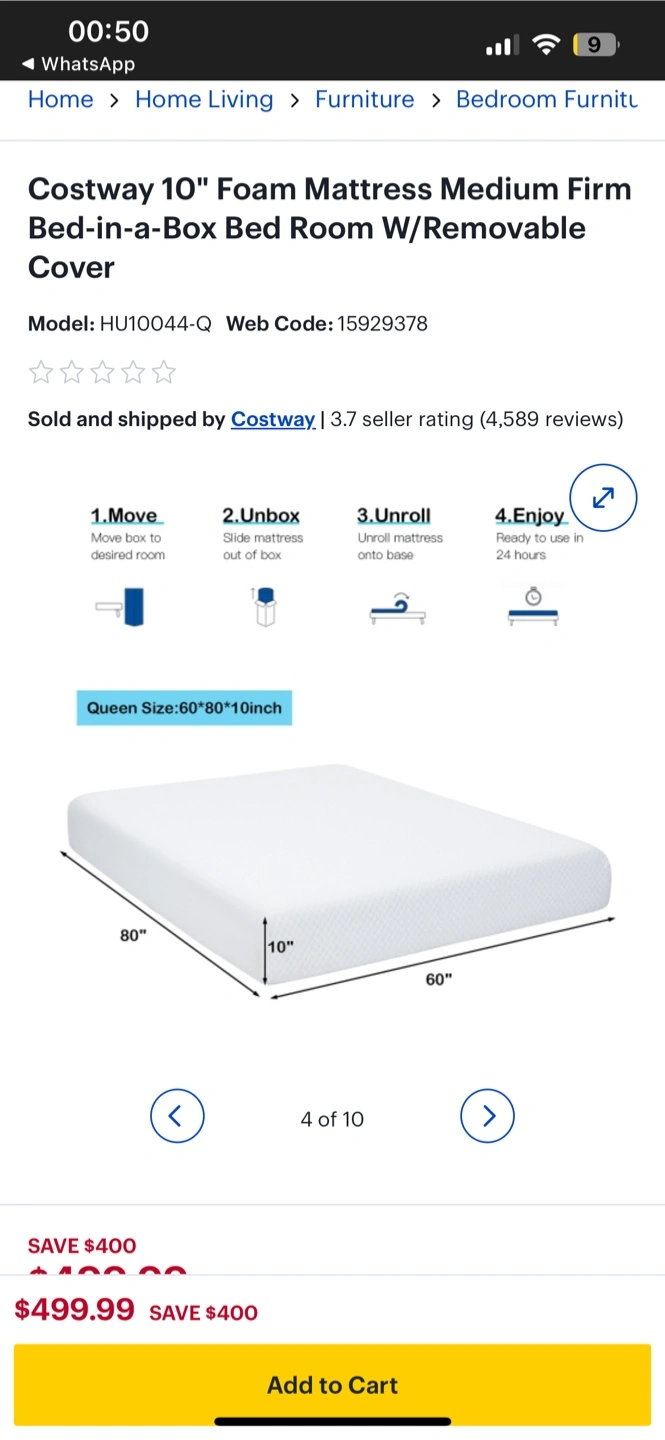 Looking to upgrade your sleep? I'm selling a Costway 10" foam mattress. The cover is removable and washable, so keeping it clean is a breeze! The size is Queen: 60"x80"x10". Originally bought for $499.99. Used for couple of months for guests. Selling due to moving issues.