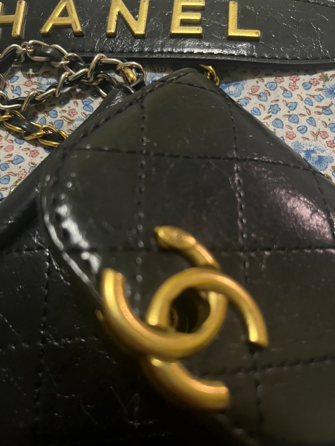 Selling a Chanel black makeup and smart phone bag with a chain. It has the classic Chanel quilting and a gold-tone logo. The chain strap adds a touch of elegance! It's perfect for carrying your essentials in style