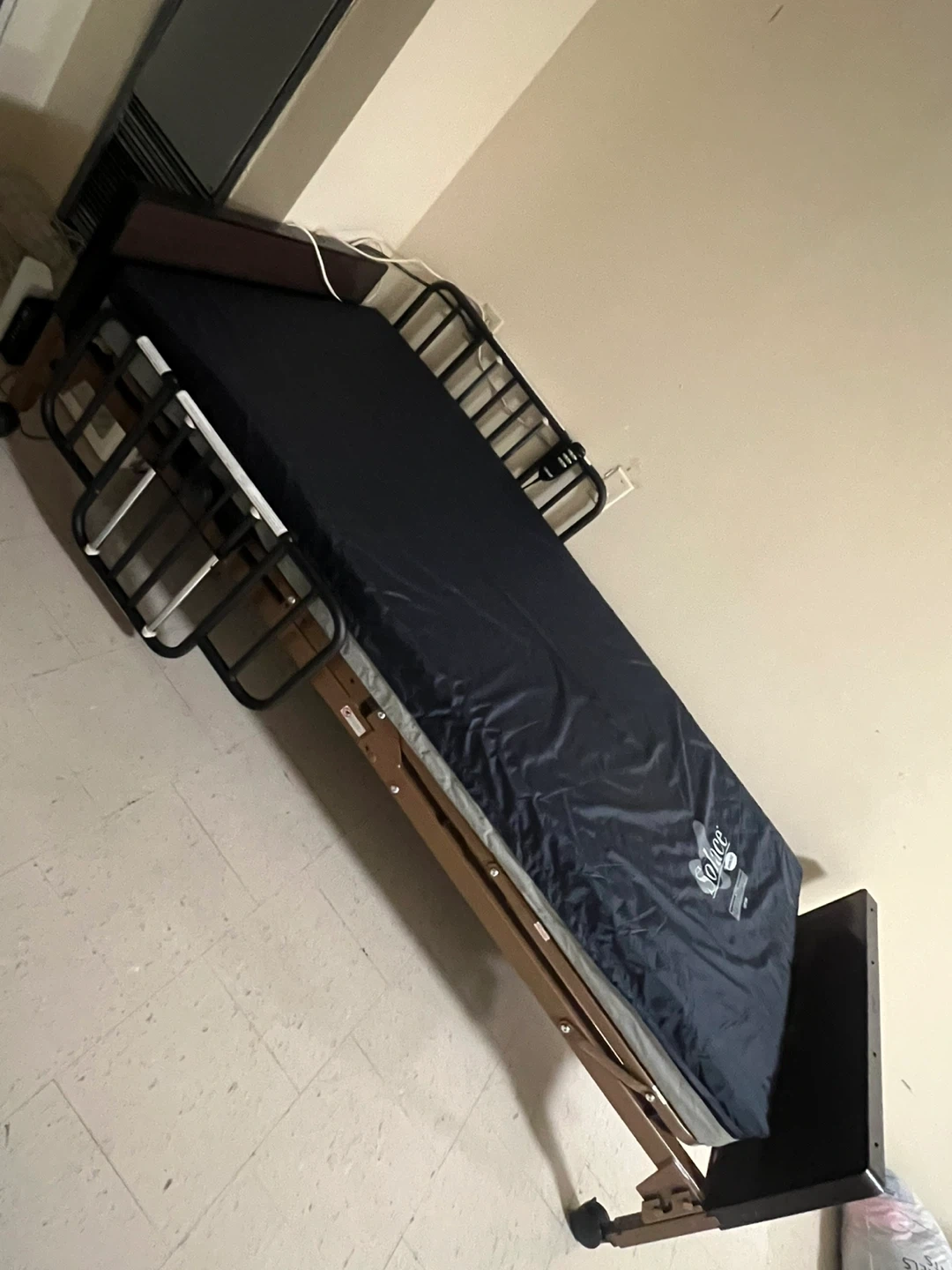 Selling a Solace mattress on a Drive medical bed frame. The bed frame has adjustable settings with a remote control. The mattress appears to be in good condition. Great for home care or assisted living needs BUYIT FOR 2400 have it for a month use only ones