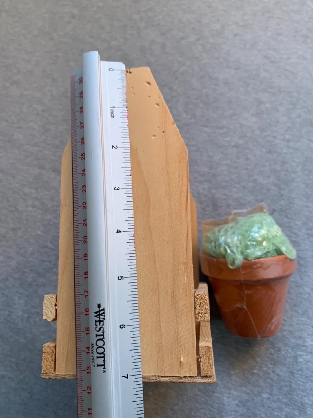 Includes a terracotta-coloured planter and a green bath sponge with soap in cellophane . Made from light-coloured wood, it features a handle for easy carrying.