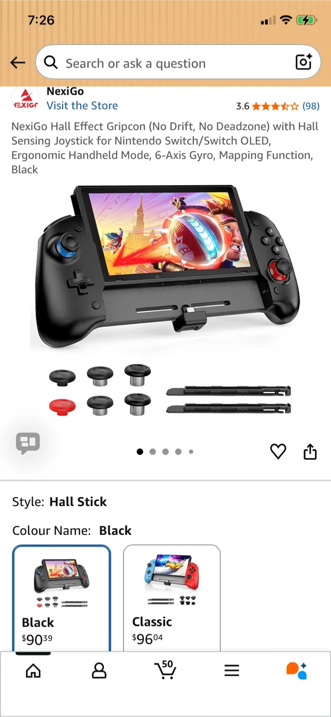 NexiGo Hall Effect Gripcon (No Drift, No Deadzone) with Hall Sensing Joystick for Nintendo Switch/Switch OLED, Ergonomic Handheld Mode, 6-Axis Gyro, Mapping Function, Black