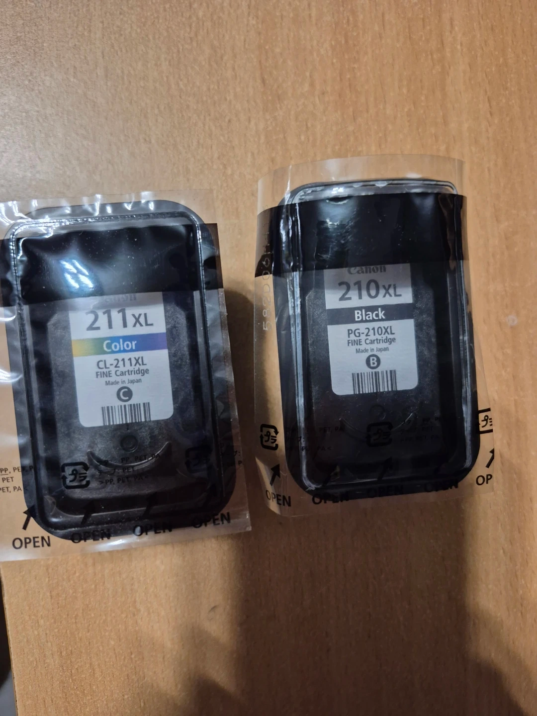 This is a bundle of two Canon FINE ink cartridges, a CL-211XL for color and a PG-210XL for black. Both are XL size and made in Japan. The color cartridge is unopened and the black has been used, but not empty. The price reflects the new cartridge. My new printer doesn't use this style.