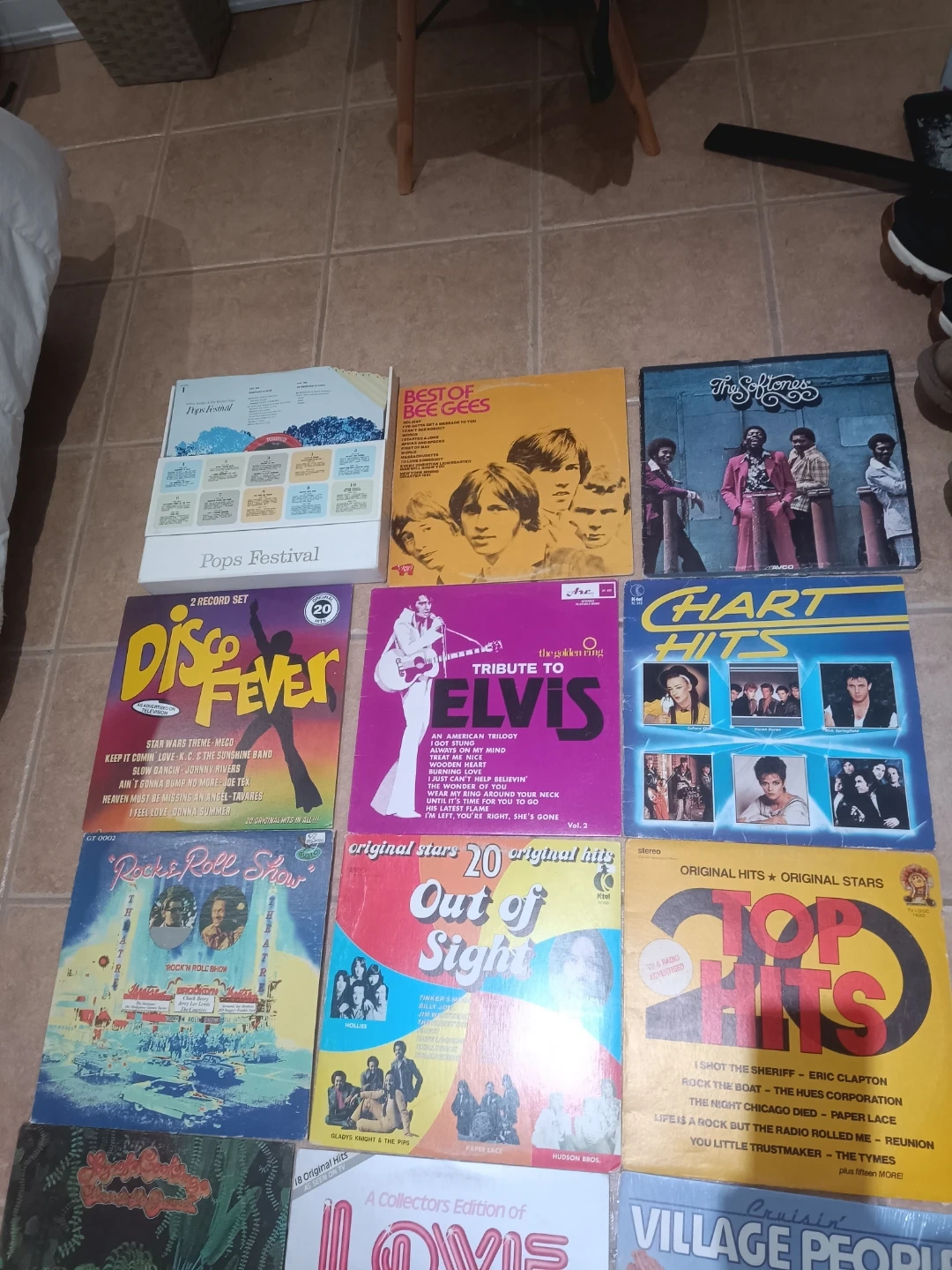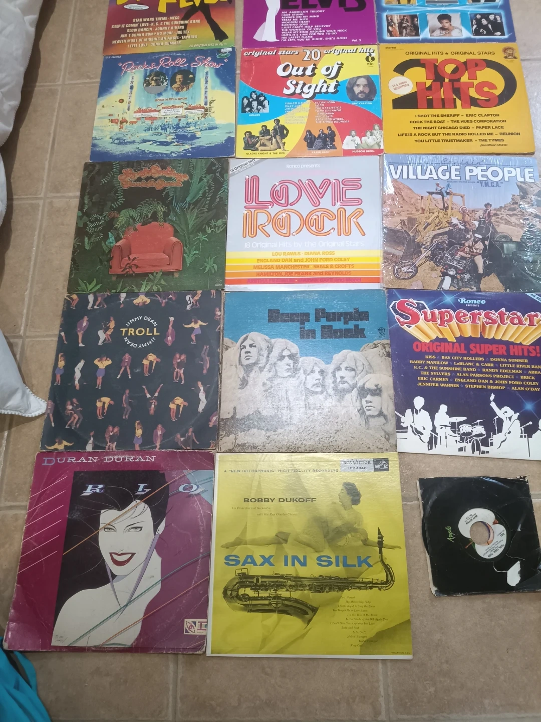 Collection of classic vinyl records from various artists and genres. Features hits from the 70s and 80s. Great for any music enthusiast looking to expand their collection.