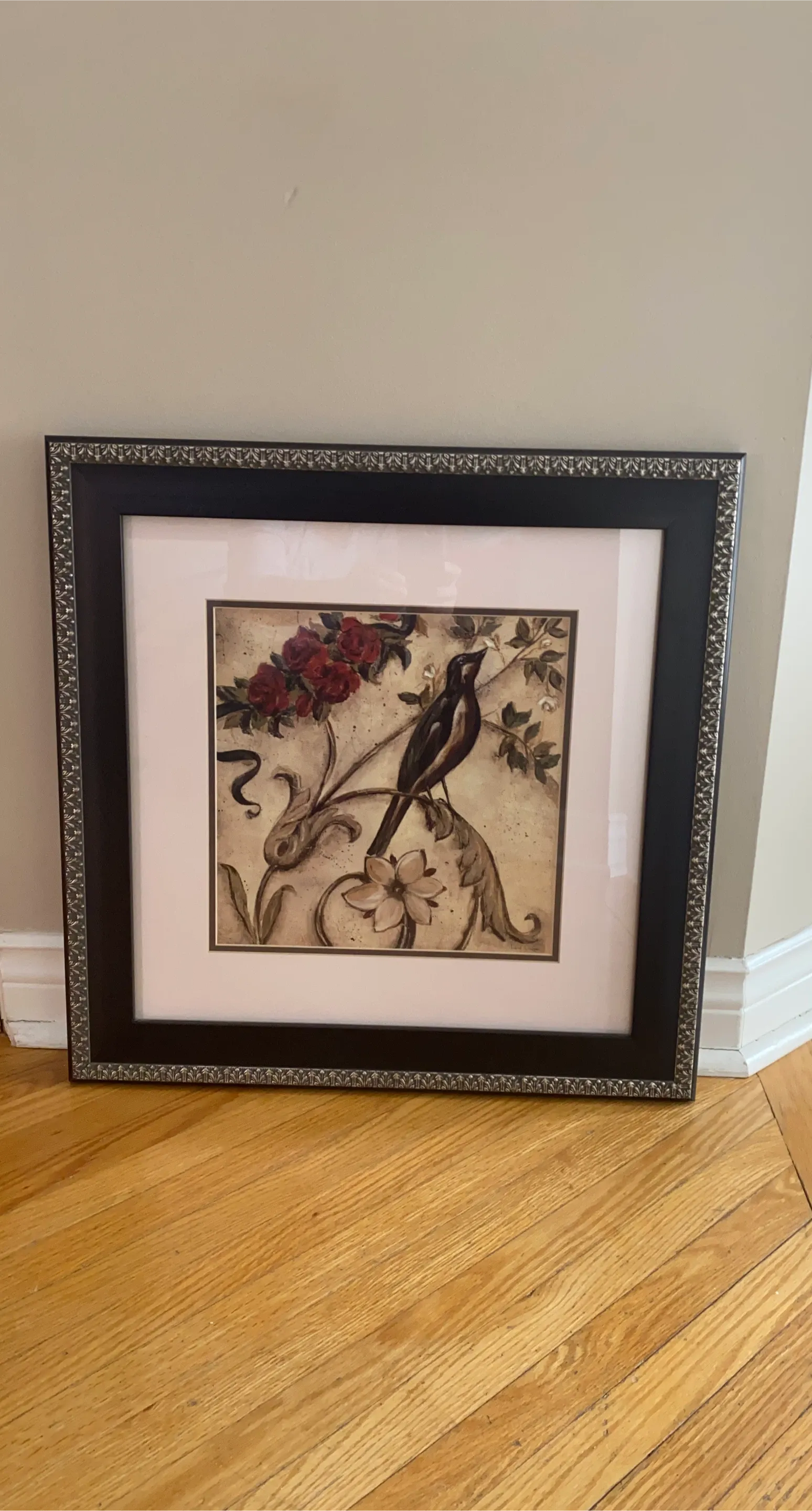 Framed Bird and Roses Artwork
