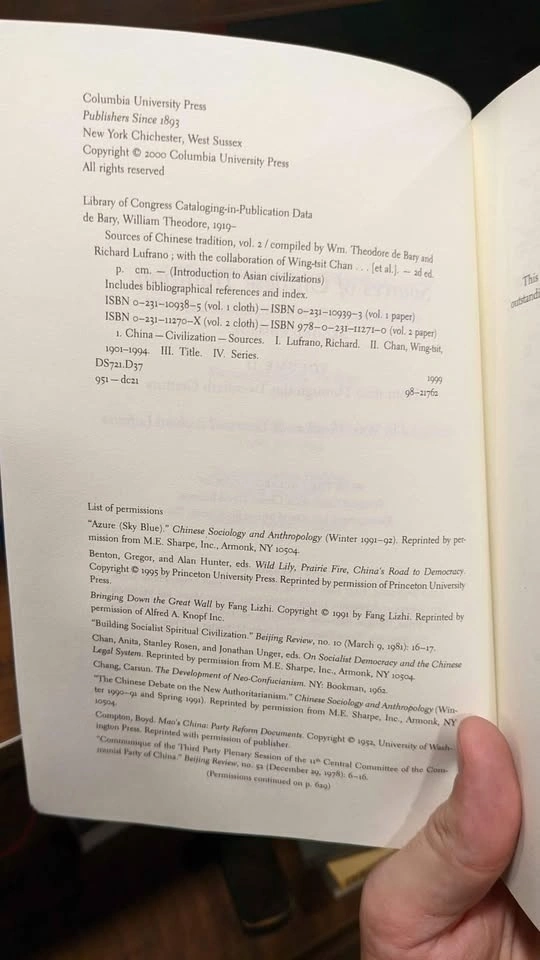 This textbook by WM. Theodore DE Bary & Richard Lufrano was purchased for a university class but was not used as I had a digital version. It is still in brand new condition.