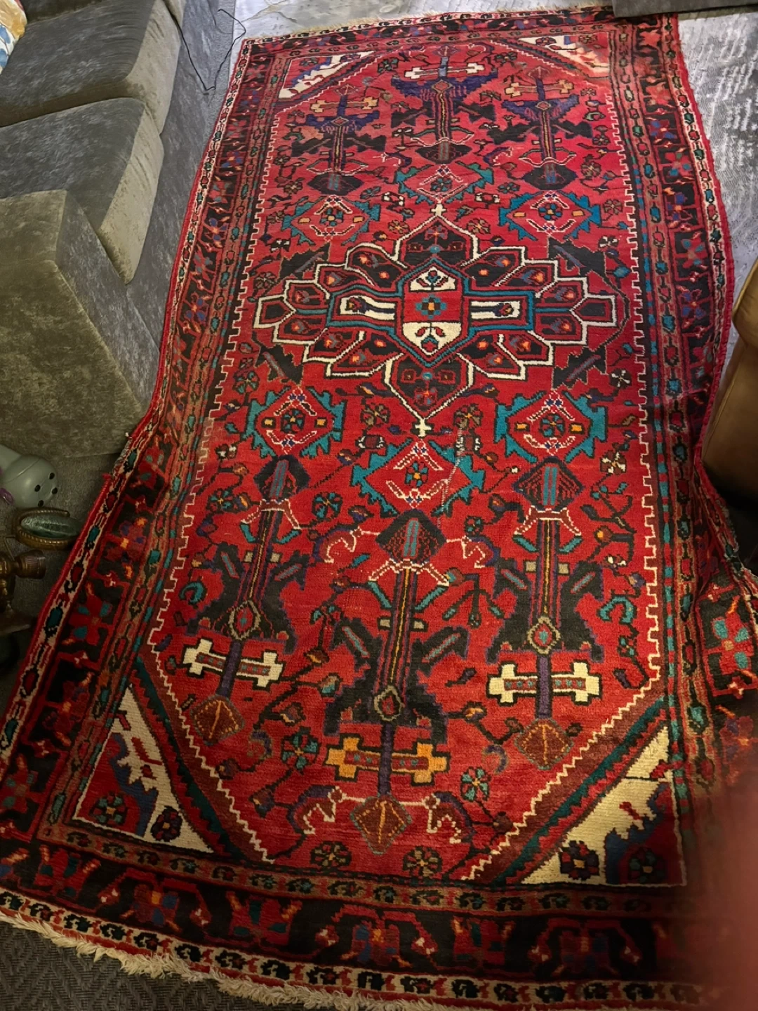Great for poor student - been there, done that! Small tear on side edge could be stitched or glued to make it unnoticeable. Otherwise, carpet is in good condition. 8’10” X 4’8”
