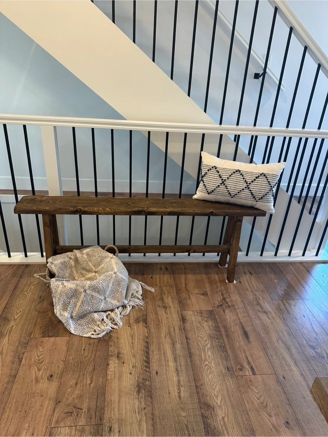 Add a touch of rustic charm to your home with a beautiful custom skinny farmhouse bench! Perfect for entryways, mudrooms, dining tables, hallways, or at the foot of a bed.