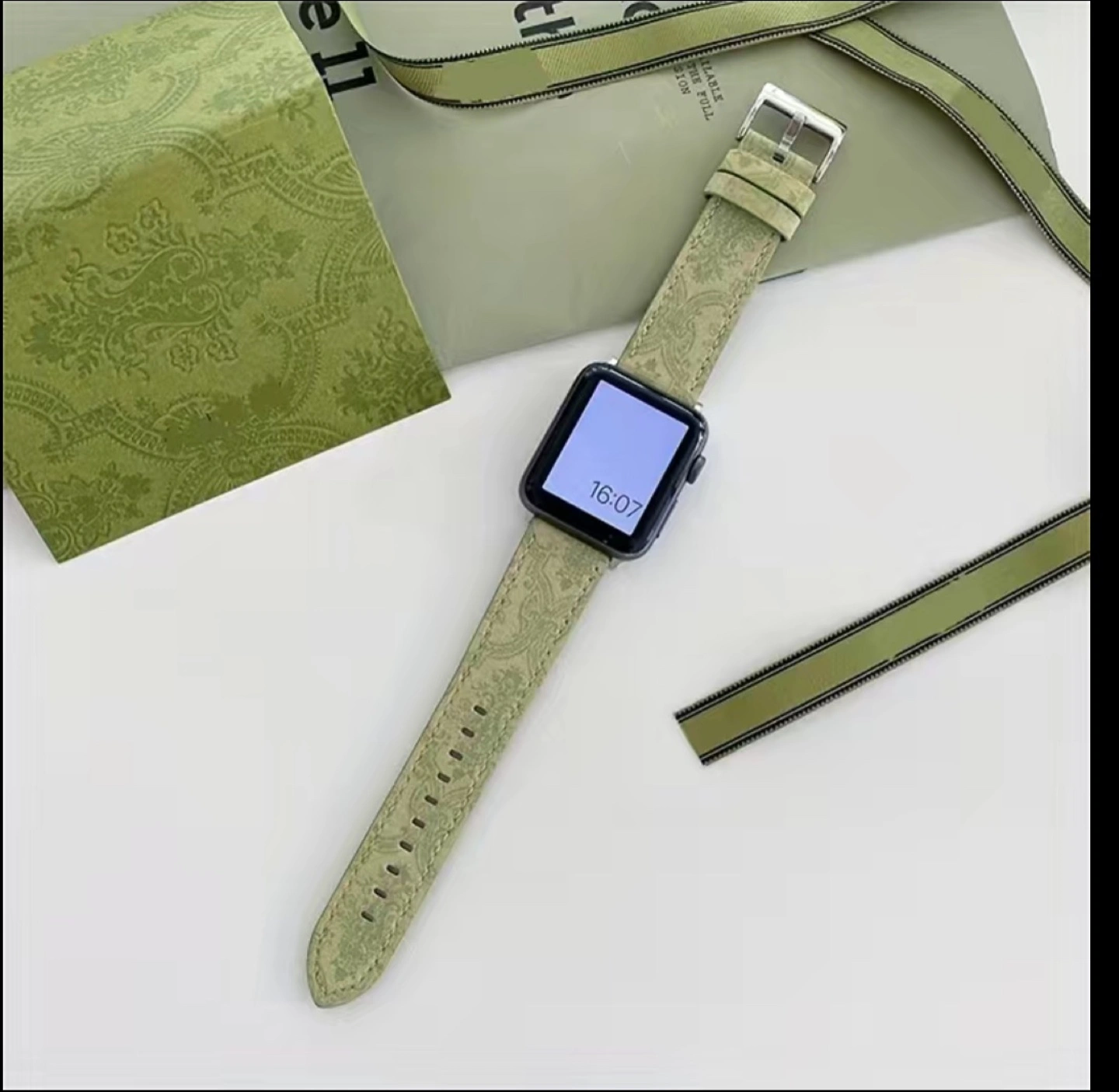 Apple Olive Green Leather Gucci Style Watch Strap