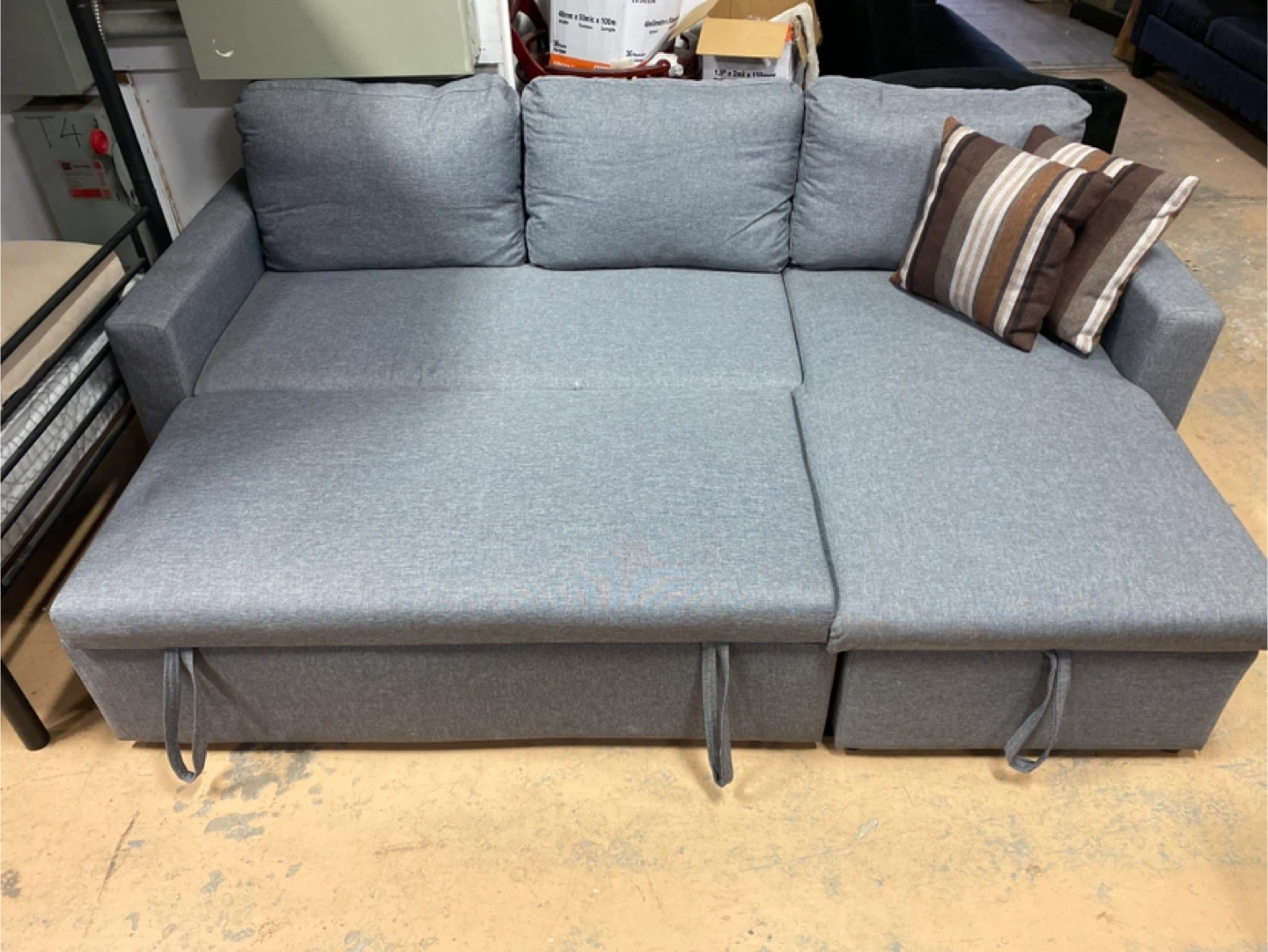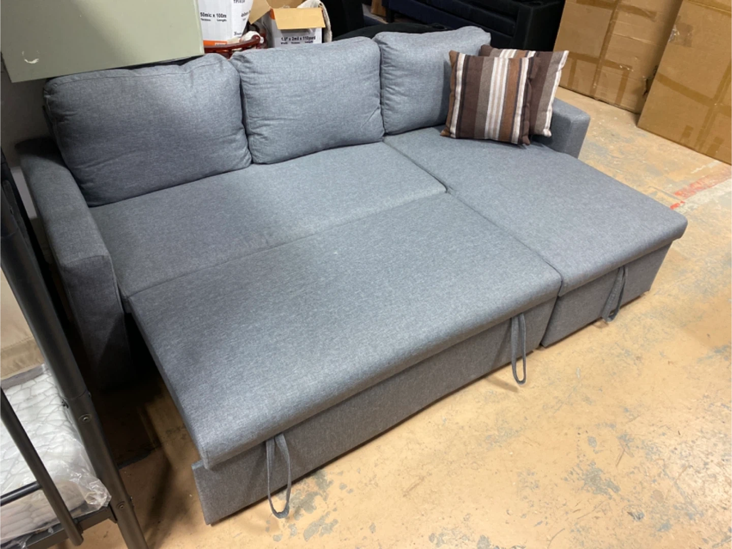 New in box Grey sleeper Sectional Sofa with Storage