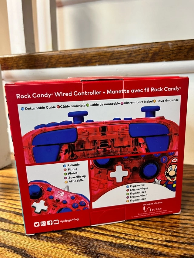 Dive into your favorite Nintendo Switch games with this Rock Candy wired controller featuring Super Mario artwork. This controller is brand new, still sealed in its original packaging, ready to enhance your gaming experience with a splash of color and iconic design. Cool transparent red design. Officially licensed by Nintendo. Wired connectivity for lag-free gaming. Ergonomic design for comfortable play. Eye-catching Super Mario graphics. Check out my other listings for more cool stuff!