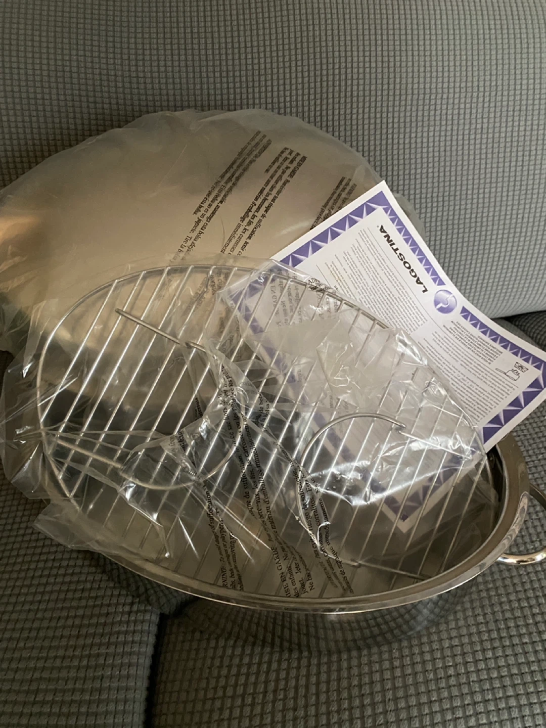 Perfect for your thanksgiving turkey This Lagostina roasting pan set is made of stainless steel. It includes a roasting rack and handles. Perfect for holiday dinners and everyday cooking!25 years warranty