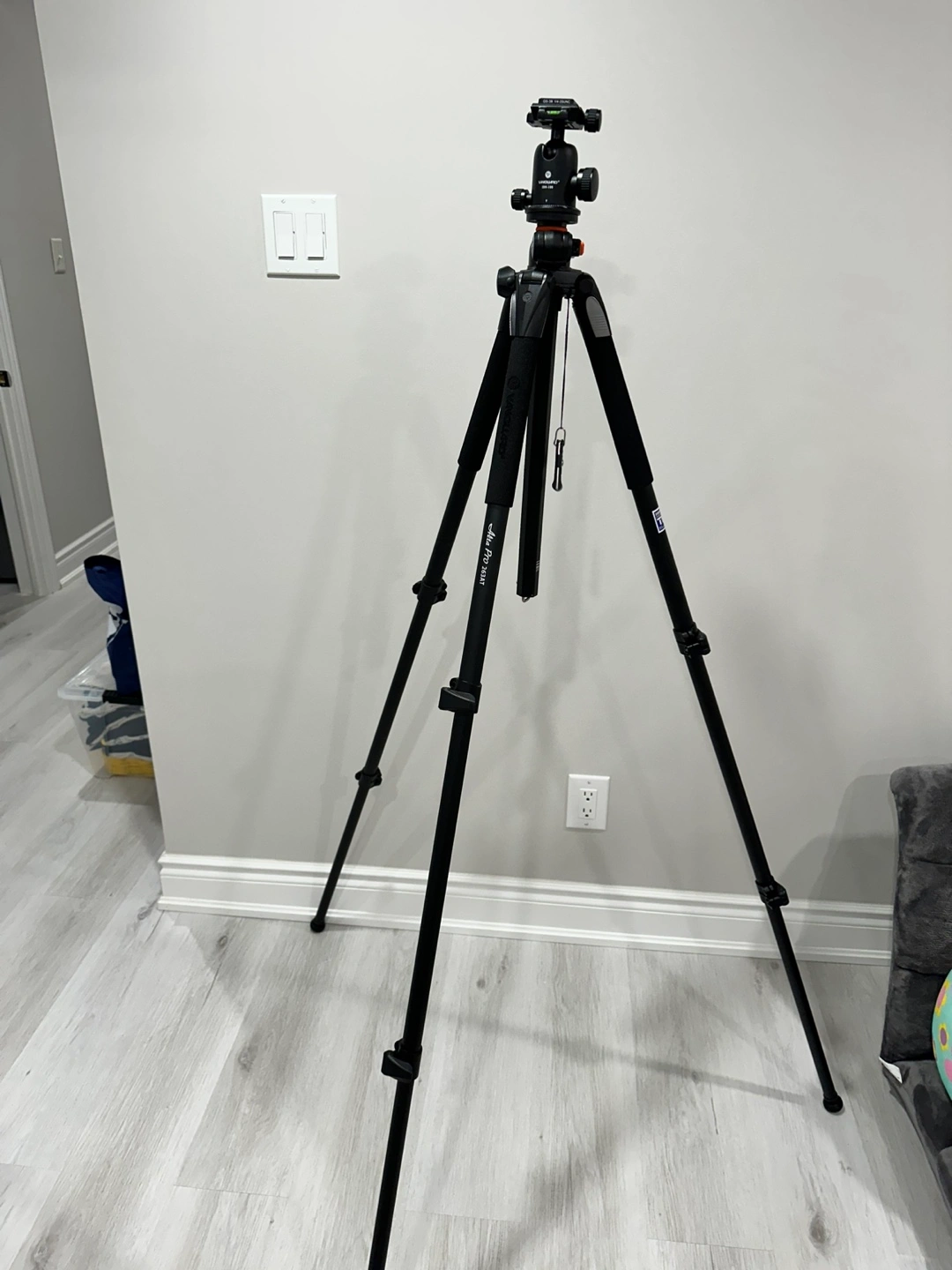 Professional Sturdy tripod, excellent condition. Features adjustable legs and a smooth ball head. Ideal for photography or videography. Includes carrying bag.