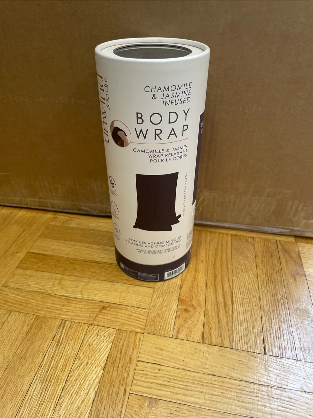 This Aroma Home Unwind body wrap is infused with chamomile and jasmine essential oils. It soothes aching muscles and promotes relaxation. It measures 60 cm x 12.5 cm (23.6 in x 4.9 in) and can be frozen or chilled before use.