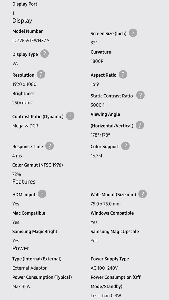Specs are in the second photo. Model: LC32F391FWNXZA. Works well, we are just downsizing and don’t need the extra equipment. Located behind Vaughan Mills.