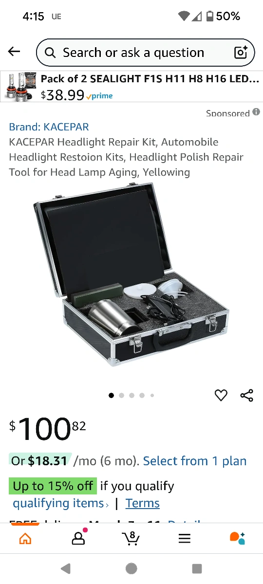 new Headlight restoration kit. Includes polishing tools and repair liquid. Great for fixing yellowed or aged headlights. Everything in a portable case.