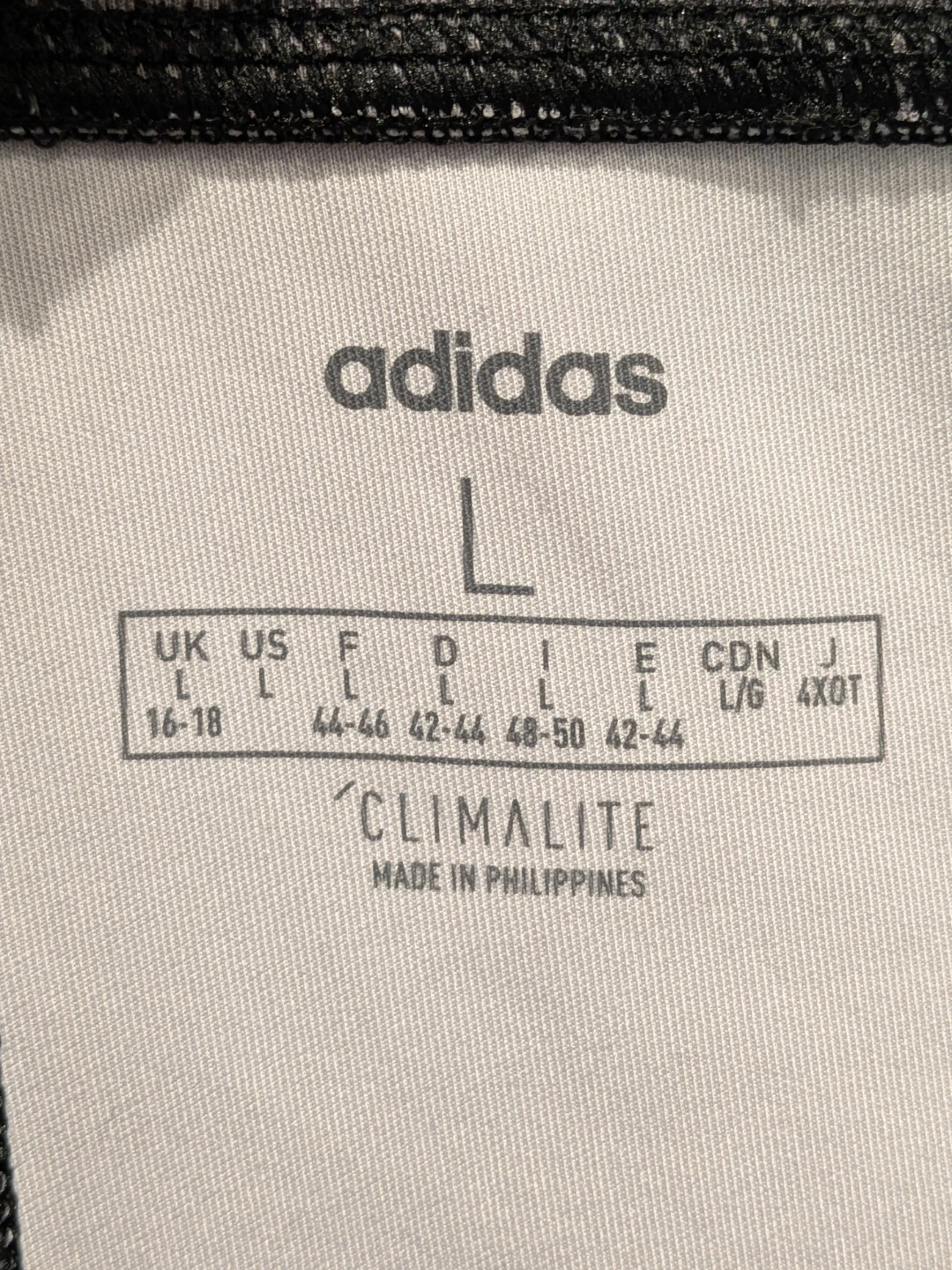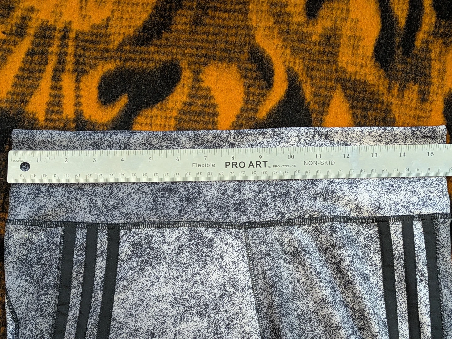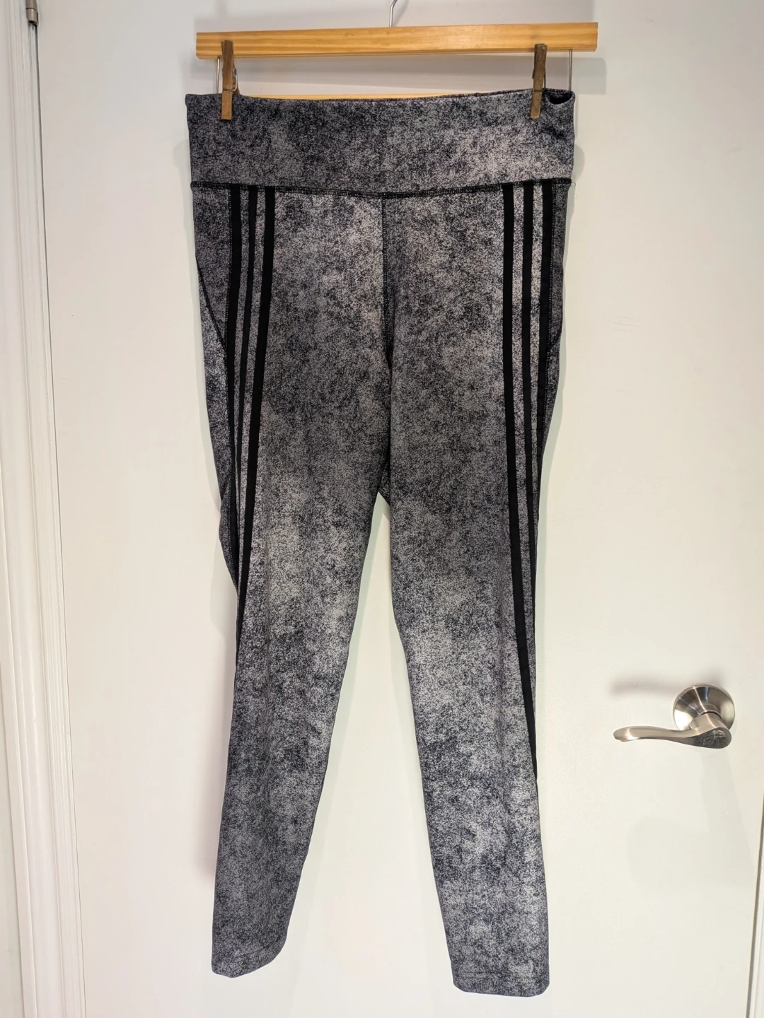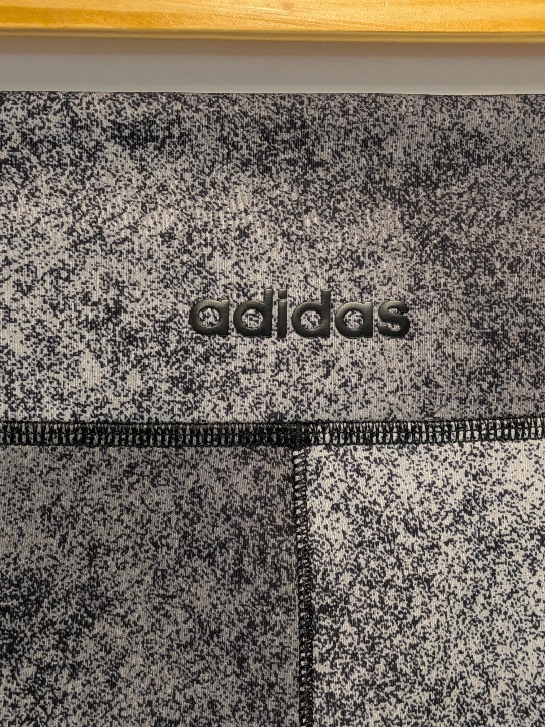 Adidas "Feeling Brilliant" leggings in a neat speckled grey (or like black on white speckles?) with the 3-stripe in black.