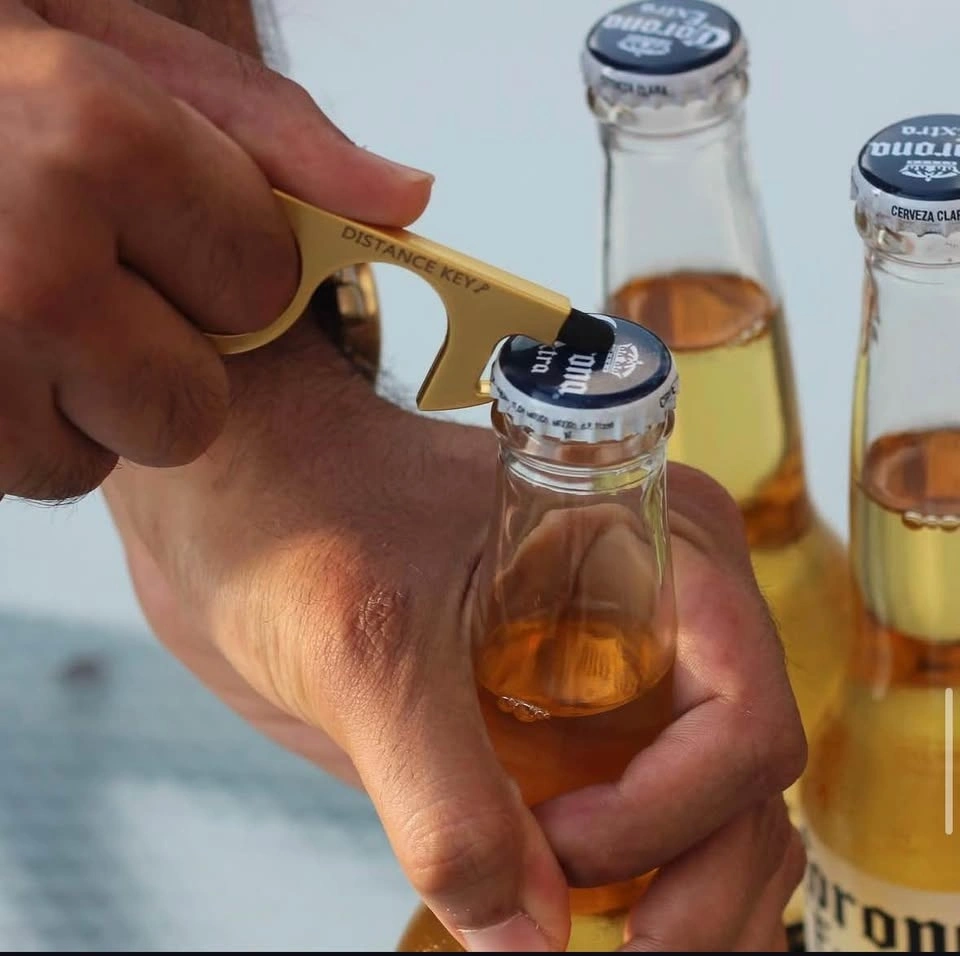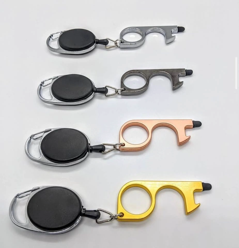 Contactless Retractable Keychain Bottle Opener Stylus Tool