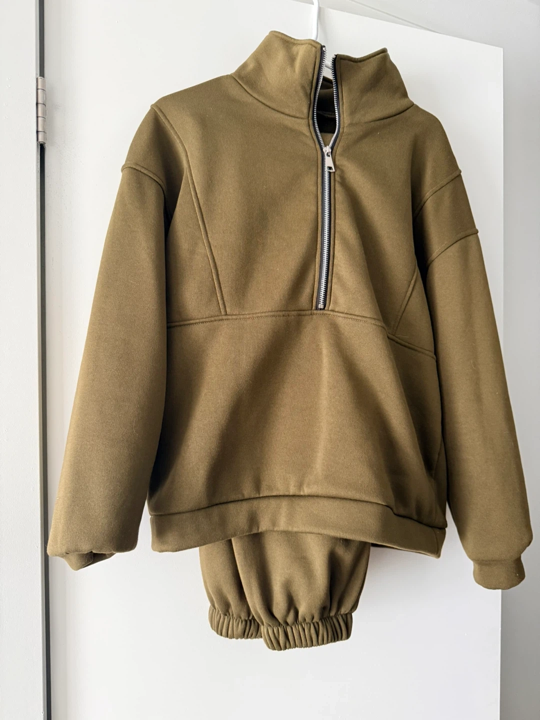 Olive Green Quarter Zip Sweatshirt and Joggers Set