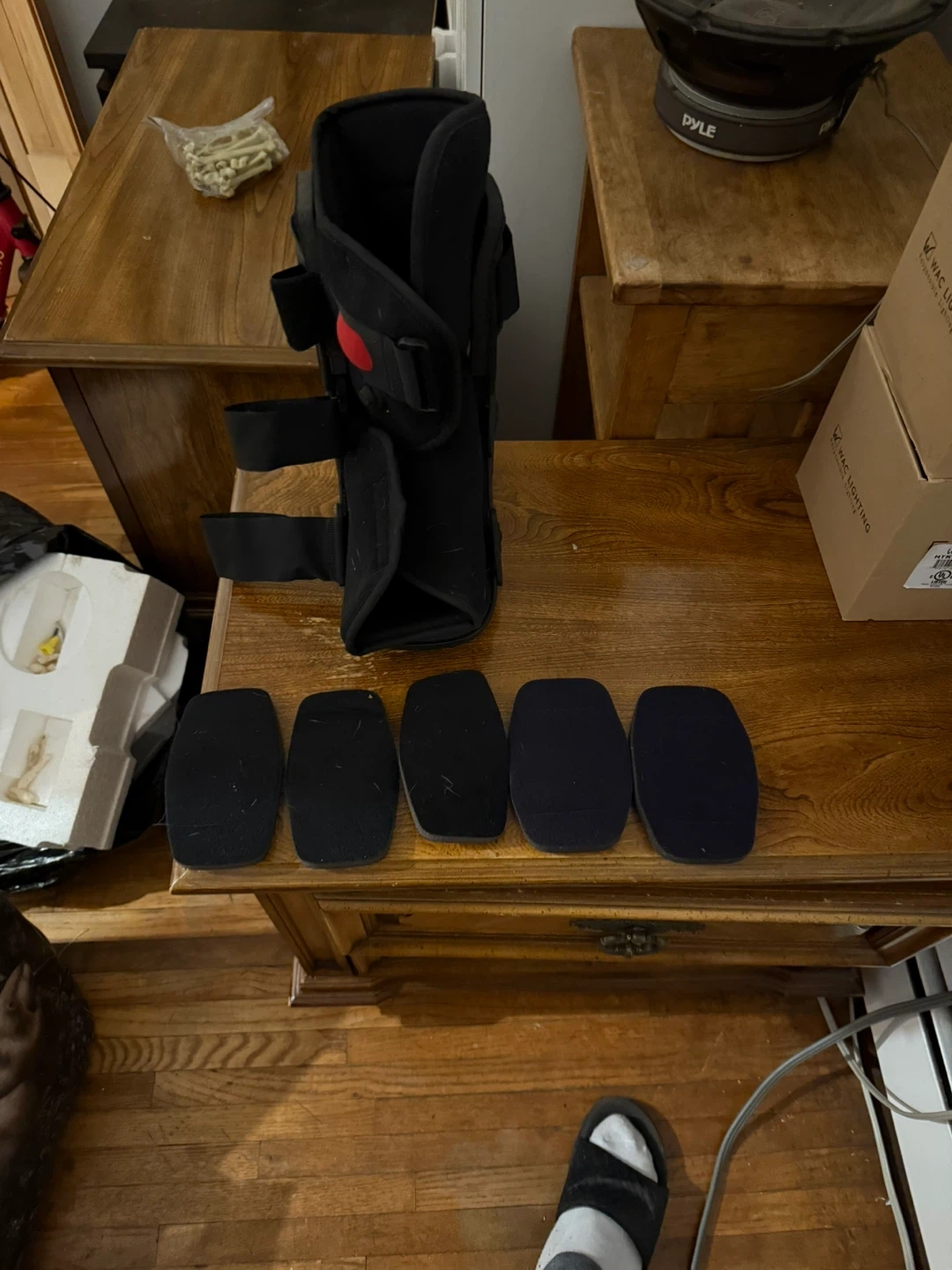 Here's a Cherrywood Foot Care walking boot in size small! It's in great shape and ready to help you get back on your feet. Hand wash in cold water using mild soap, do not bleach, and line dry only