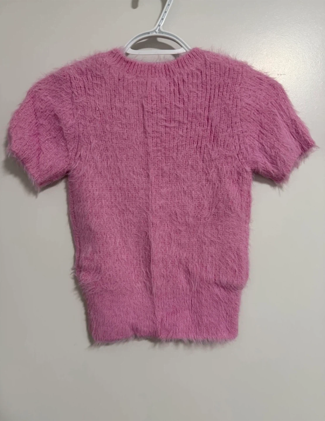 NWT -ZARA Pink Rhinestone Fuzzy Short Sleeve Sweater - Size M