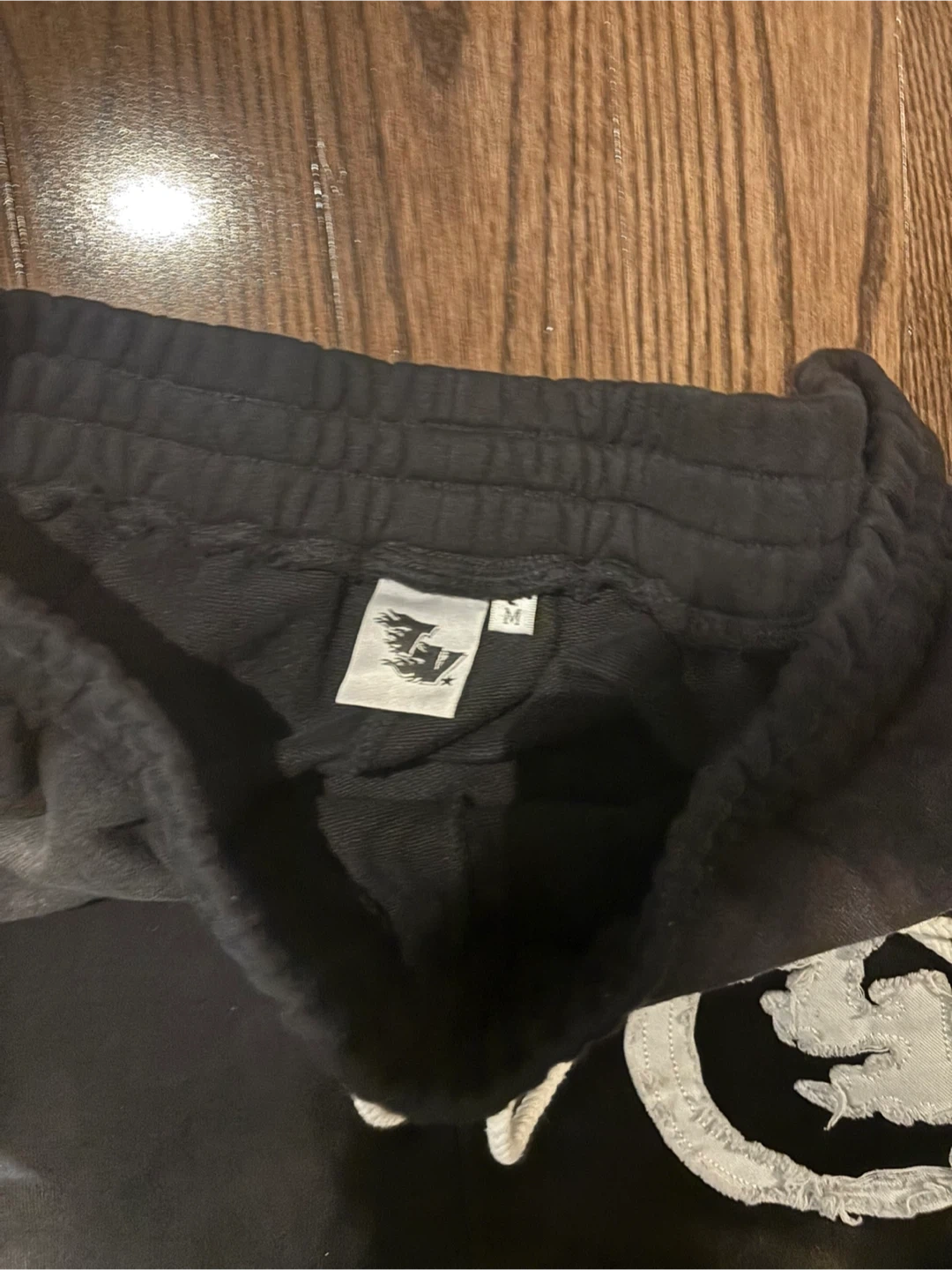 Black sweatpants with "VISIONZ" graphic on the leg. Size medium. Made of soft material for comfort.